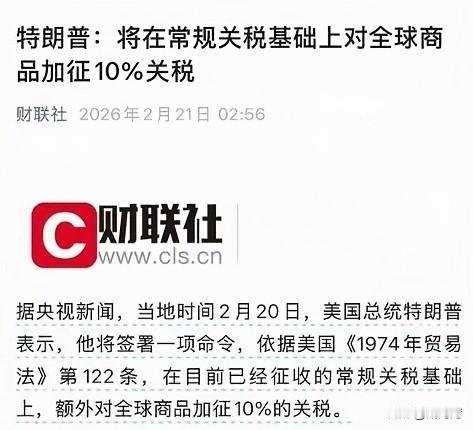 特朗普就是牛! 尽管美国最高法院宣判特朗普对全球国家增加关税违法,但特朗普一点都不在乎。更可恶的他随即依据美国1974年贸易法开出对全球国家商品在常规关税基础上增加10%的关税来找回面子。 不得不说,特朗普真的很狂。利用总统的特权可以胆大妄为,肆意妄为,为所欲为。这枚炸弹,真不知道什么时候会爆炸,全人类都会跟着遭殃!