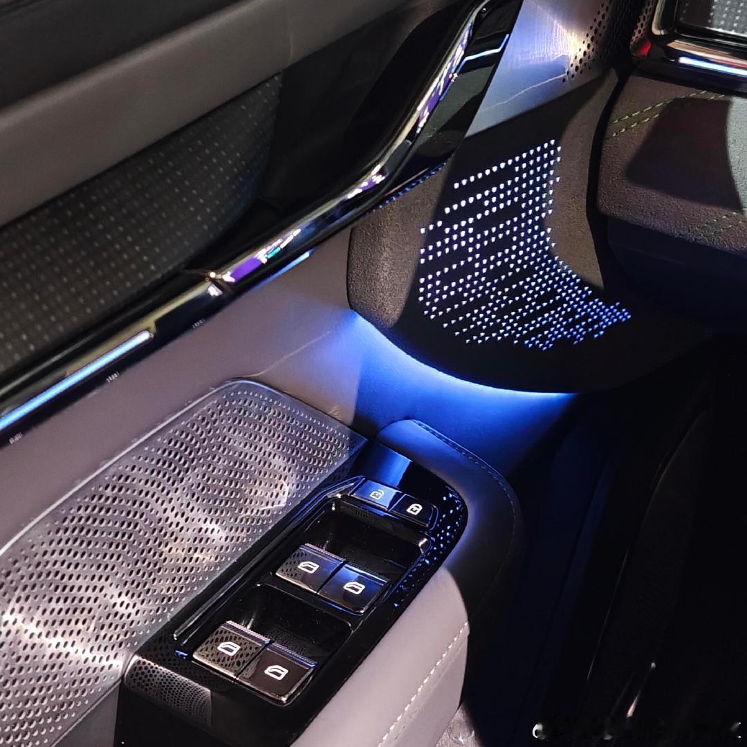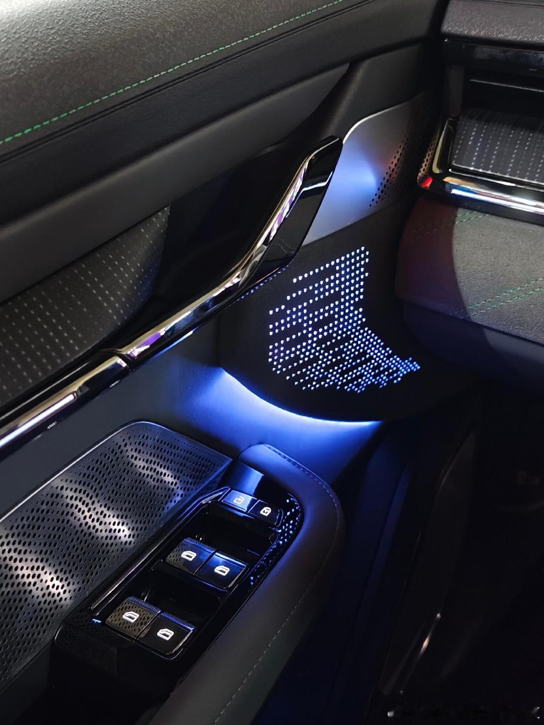与镀铬装饰和谐的融为一体但又能一眼看出是机械装置的门把手(电子开关在扶手侧面也很方便)。镀铬的机械窗户开关。以及讽层次分明的门板,加上绿色缝线点缀。夜幕降临后,见光不见灯的都市风氛围灯。不论是设计还是人机交互一切都这么恰到好处。可惜的是这些设计在新款已经看不见了。(