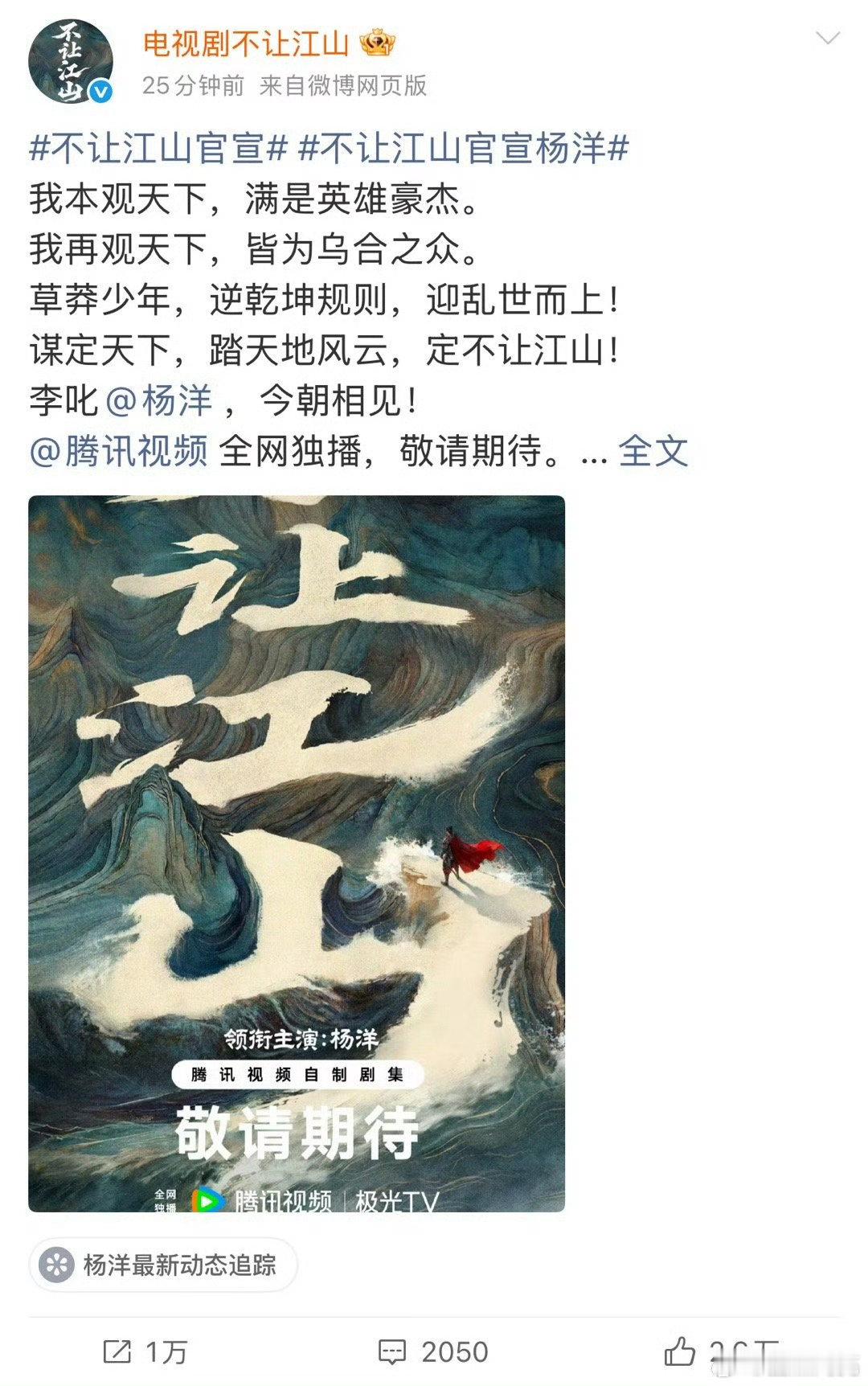 杨洋不让江山官宣海报不让江山官宣海报 懂的都懂单独官宣的厉害!杨洋主演《不让江山》,逆袭帝王强势亮相,这颜值与角色适配度,不追真的亏大啦!杨洋