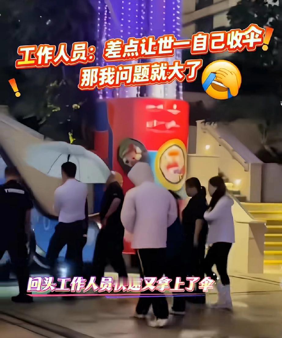 太逗了! 活动进场,外边下雨,莎莎出来,工作人员拿着一个大大的伞给莎莎撑着。莎莎回头看看一把拿过伞要自己撑着,工作人员拉扯说帮个忙撑着,莎莎不让,结果刚拿到伞就回头叫后面的其他人和佳佳到跟前来。 佳佳和深大教练都捂嘴笑,就不上前面去。 马上就到室内,莎莎抬手要把伞手气来,工作人员赶紧跑上去拿过伞收起来。 网友调侃,这差一点就被挂网上,要世一自己收伞了。 莎莎:我有手,自己来!别让我显得这么高调,会被网喷! 哈哈,莎莎放心不会喷你的。