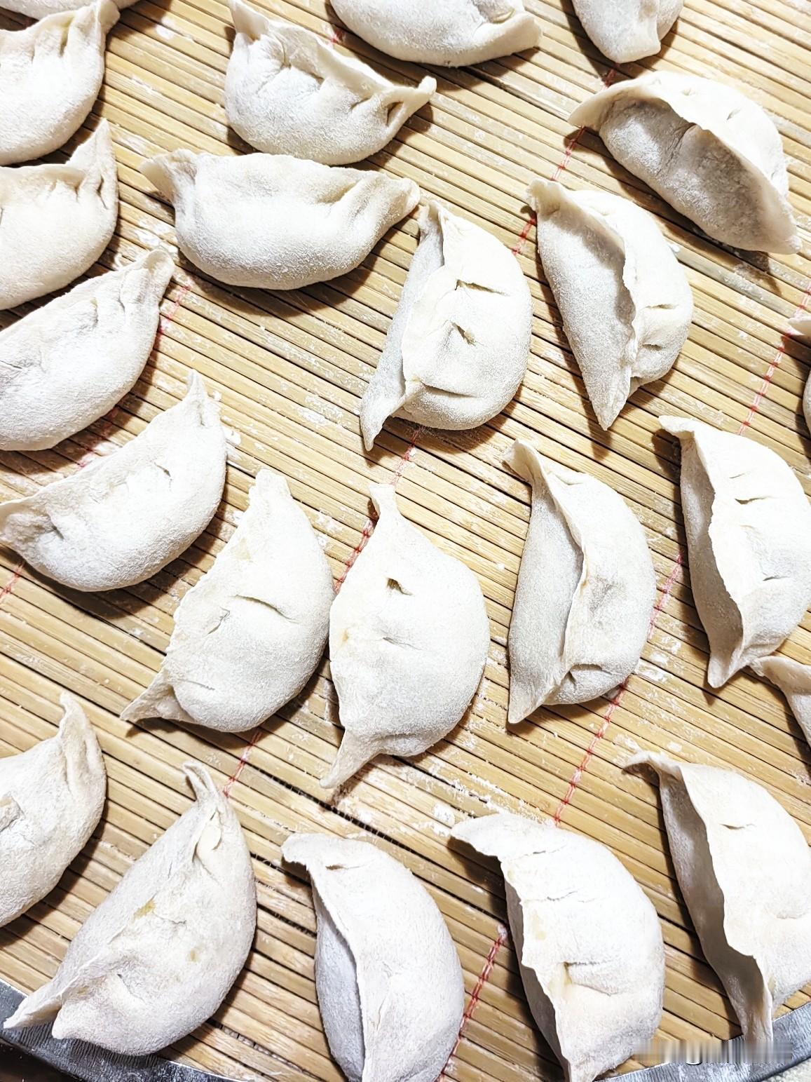 今天是大年初五, 友们今天要包饺子吃。 饺子形状似元宝, 招财进宝好运来。 今天我家包三鲜馅, 虾仁、鸡蛋和韭菜, 好吃美味好寓意!