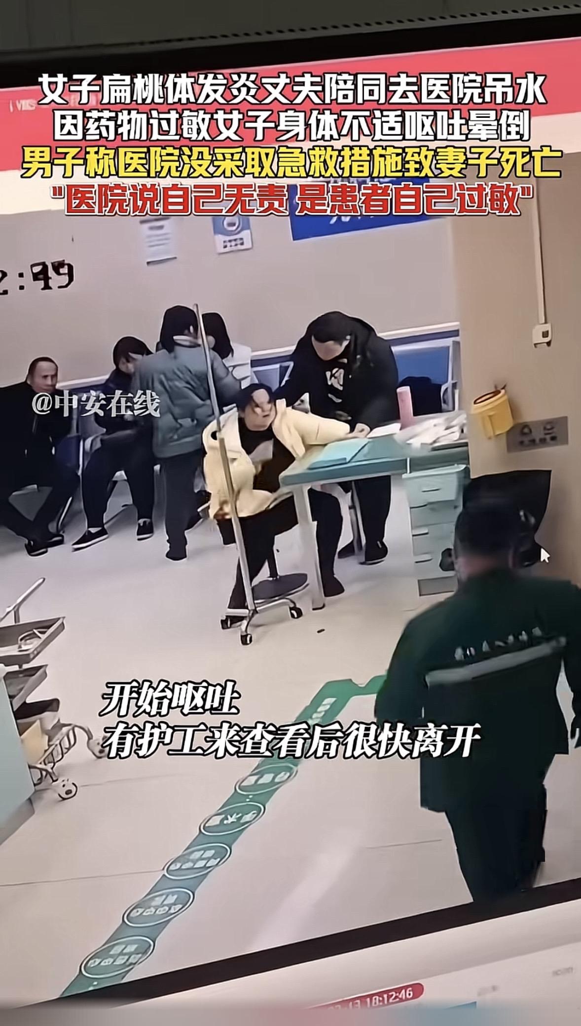 湖南益阳,女子因扁桃体发炎去医院输液,护士给她输头孢曲松,结果输进去几秒钟的功夫,女子就因过敏呕吐不止,还晕倒了,护士赶到后将输液针拔掉,且没有为女子重新建立静脉通道,女子最终因错过黄金救援时间死亡。陪同的丈夫目睹全程,备受打击,他认为医院应该全责承担,可院方却说是患者自己过敏,还不让丈夫见尸体。 大过年的,男子的妻子因为扁桃体发炎,来到了医院。 输液室里,妻子脸上挂着点病容,嗓子肿得说话都费劲,男子陪在一边,手里拎着吊瓶架子,满脸担心。 挂的药是头孢曲松,做皮试的时候显示阴性,正常来说是没问题的。 随着液体一滴一滴往下掉,刚开始那几秒,一切都还正常。 此时的男子还在跟妻子有一搭没一搭地聊着天,想让她放松点。可突然间,妻子脸色就变了。 不是那种生病的苍白,而是一种吓人的青紫。 “我难受……”妻子这话刚出口,人就不行了。 根本没给反应时间,妻子一头栽倒,呕吐物喷了出来,整个人瞬间瘫软在椅子上,意识全无。 这就是典型的过敏性休克,来得又急又凶。 丈夫当时就吓傻了,但他毕竟不是专业的,不懂发生啥了,第一反应是去关那个输液管。 他以为是药滴得太快或者有杂质,手忙脚乱地把开关拧死,然后冲着走廊声嘶力竭地喊护士:“快来人啊!不行了!” 护士跑过来了,是个年轻姑娘。眼前的景象把她也震住了。 只见病人翻着白眼,嘴角挂着呕吐物,身体像面条一样软。 接下来的一幕,成了这起悲剧里最让人意难平的节点,也成了男子心里永远过不去的坎。 护士赶到后,直接拔掉了那根插在妻子手背上的输液针。 当时的男子处于极度恐慌中,他后来回忆说,他只记得护士过来看了一眼,然后手一扬,针就没了。 他当时脑子一片空白,觉得针拔掉也好,省得再出问题。 但他不知道的是,对于过敏性休克的抢救,这根针就是“救命管”。 护士拔针之后,并没有立刻在另一只手或者脚上重新扎进去建立新的通道。 现场乱成一锅粥,有人去叫医生,有人去推抢救车,但就是没人第一时间把那根血管通路重新接上。 就在这手忙脚乱的几分钟里,妻子的心跳可能已经停了。等到医生赶来,肾上腺素等急救药终于推进去的时候,已经过去了好几分钟。 也就是“黄金四分钟”被错过了。 最终,人没抢救回来。一条鲜活的生命,因为一个扁桃体发炎,就在男子眼皮底下没了。 男子事后整个人像被抽走了魂。他一遍又一遍地去医院调监控,盯着屏幕看那几分钟的画面。 当他看到针被拔掉、护士空手站在那里的那几秒,当他得知护士这行为属于重大失误时,那种绝望和愤怒瞬间炸了。 他质问院方,护士当时为什么要拔针?啊?为什么不留着通道救命? 医院方面给出的解释很冷静,也很官方,说这是严重的药物过敏反应,属于医疗意外,皮试阴性也不能百分百排除。 至于拔针,院方认为当时情况混乱,且拔针不一定是导致死亡的直接原因。 但这说法说服不了家属,也说服不了看过监控的网友。 有些懂得急救常识的网友说了,一旦发生药物过敏休克,静脉通道就是生命线。 这时候体内的血管会扩张,血压狂掉,必须通过静脉通道快速推注肾上腺素、地塞米松等药物来升压、抗过敏。 把针拔了,就等于把这条路给掐断了。等到要打针救命时,还得重新找血管、扎针、接管,这一套流程下来,少说也得一两分钟,甚至更久。 对于命悬一线的病人来说,这一两分钟就是生与死的距离。 所以视频里那个拔针的动作,是有大问题的。 护士也不是恶意,更多的是一种应急反应的缺失和经验的不足。 但不管怎么样,医院绝对有责任。这个时候应该马上用抗过敏抢救药。静脉通道不应该扒针。马上通过静脉注射药。这么久完成可以抢救。 如今,男子认定医院错过了黄金抢救时间,操作失误。医院却认定这是不可抗力的过敏。 更让男子无法接受的是,事后医院不让他见妻子的尸体,还要求他签11万的人道主义赔偿。 那从法律角度,怎么看这件事? 《民法典》第1222条规定:患者在诊疗活动中受到损害,有下列情形之一的,推定医疗机构有过错:违反法律、行政法规、规章以及其他有关诊疗规范的规定。 根据临床急救规范,发生过敏性休克时,保留静脉通道是抢救的生命线,用于快速推注肾上腺素等急救药物。 监控显示,护士在未建立新通道的情况下先行拔针,导致给药延迟,这个行为明显违反了《临床急救技术操作规范》中关于“先建立新通道再拔除旧通道”的基本操作流程。 虽然患者死于严重药物过敏,但医院的违规操作直接导致“黄金四分钟”被错过,切断了给药途径。 依据本条,医院无法通过主张“患者体质特殊”来免责,必须证明其操作合规。 如果鉴定确认拔针行为与死亡存在因果关系,医院将依据本条承担全额赔偿责任。 对此,你怎么看? 关注@运良说法 学法律知识不迷路