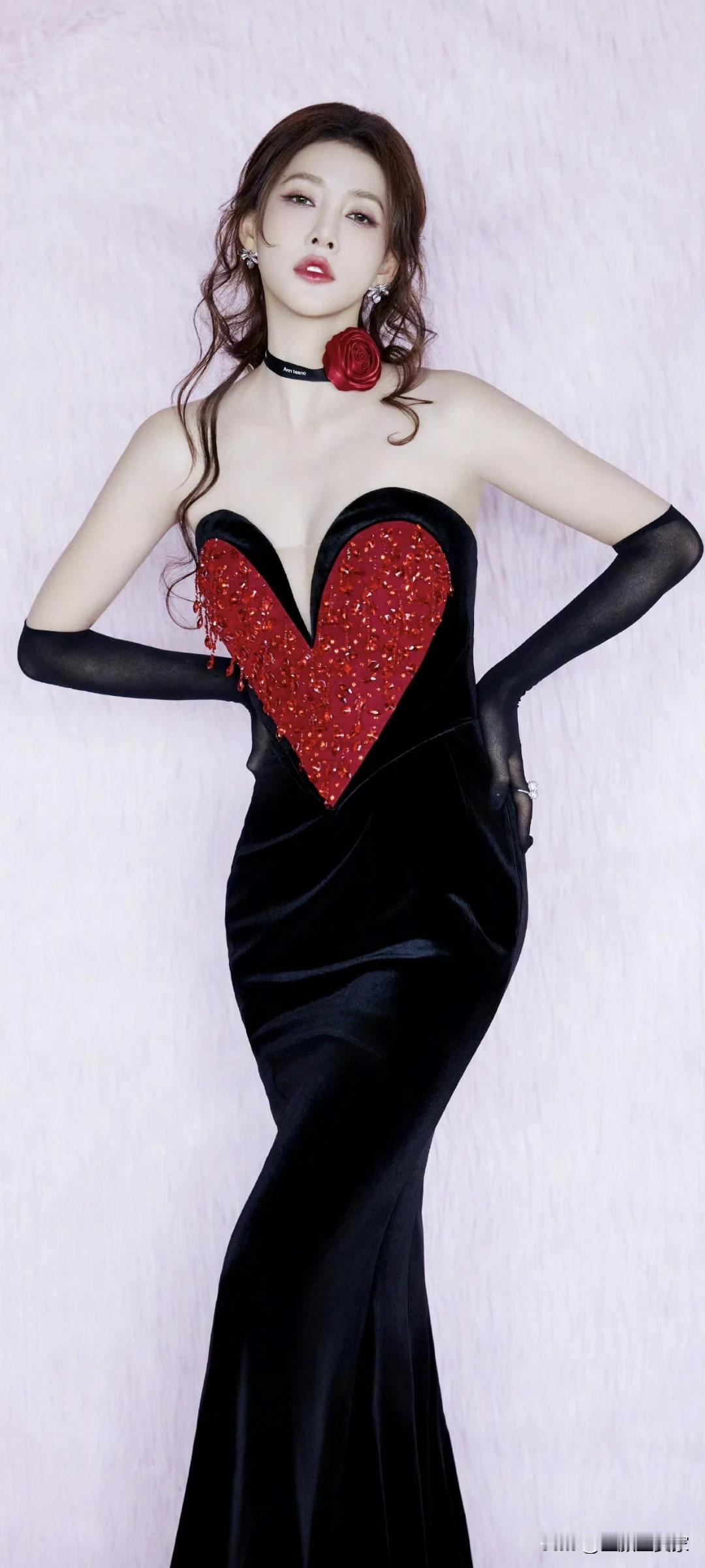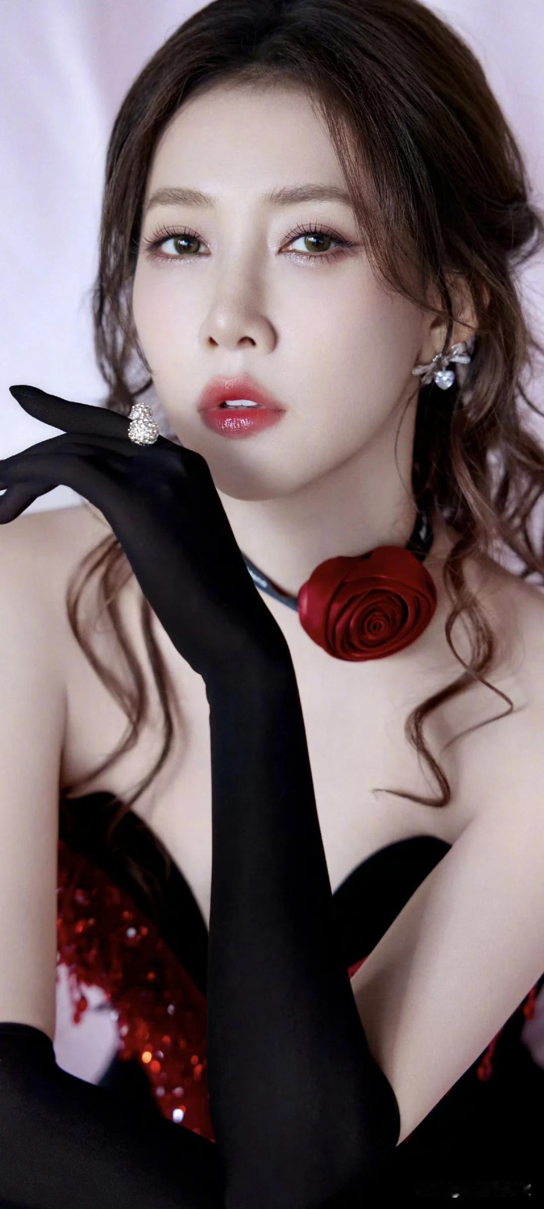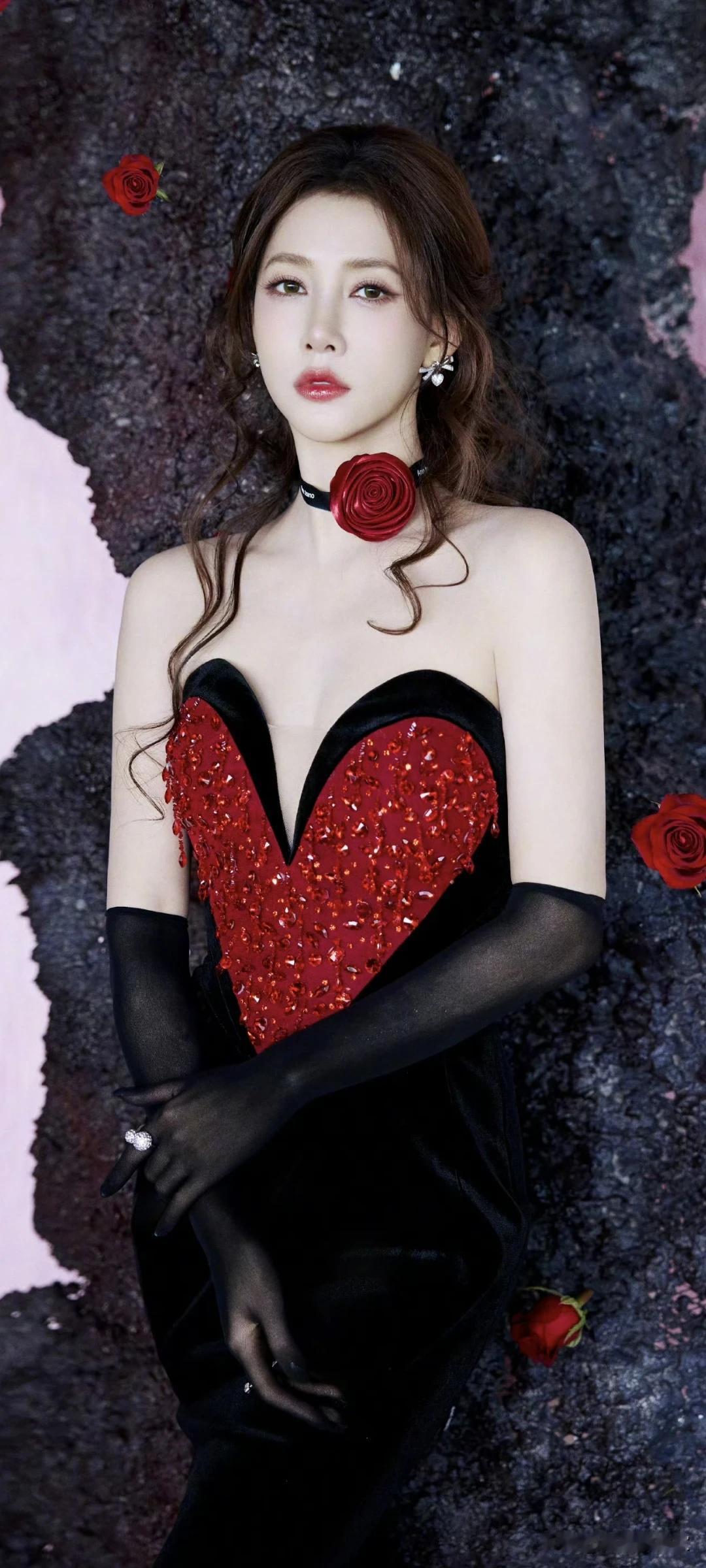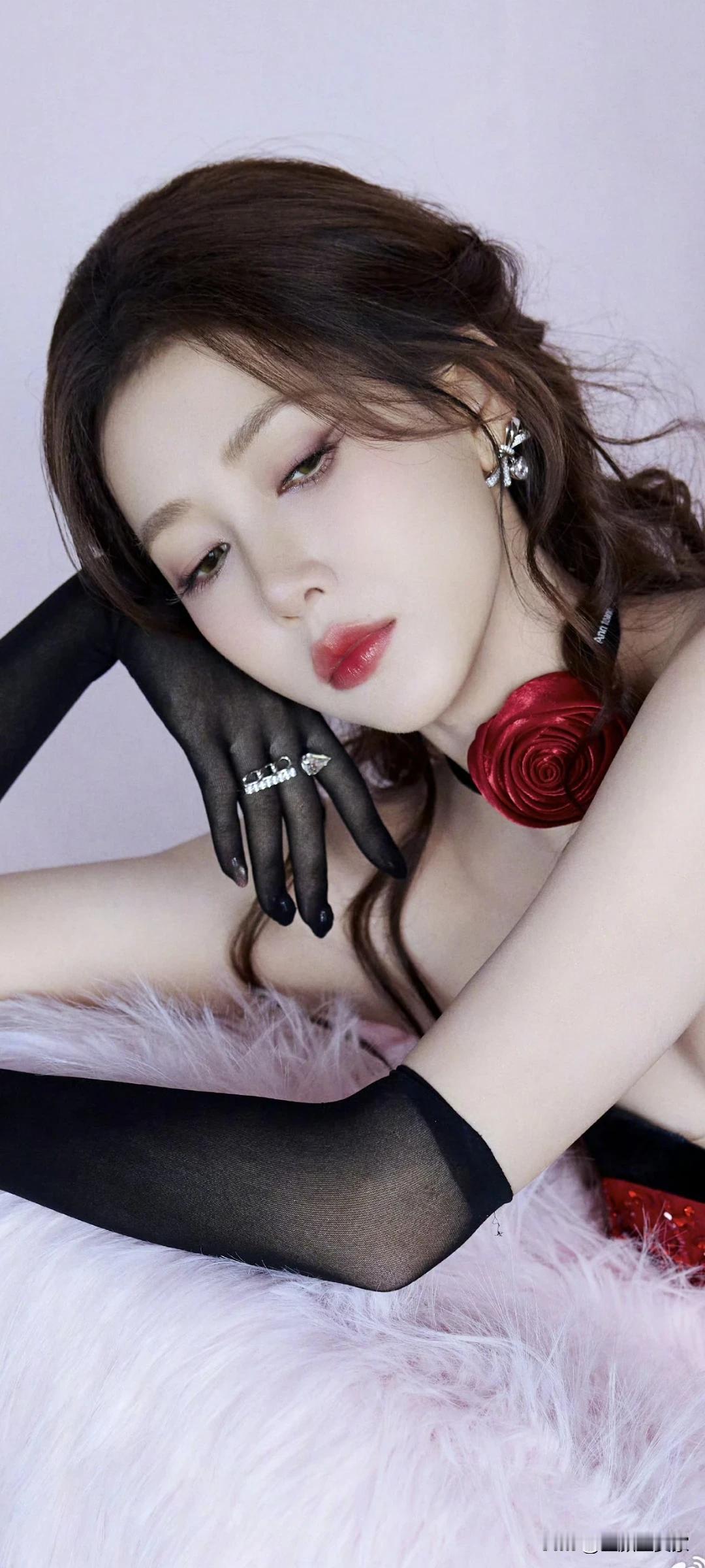孟子义写真壁纸~明艳红裙+精致猫耳造型,性感又甜美!