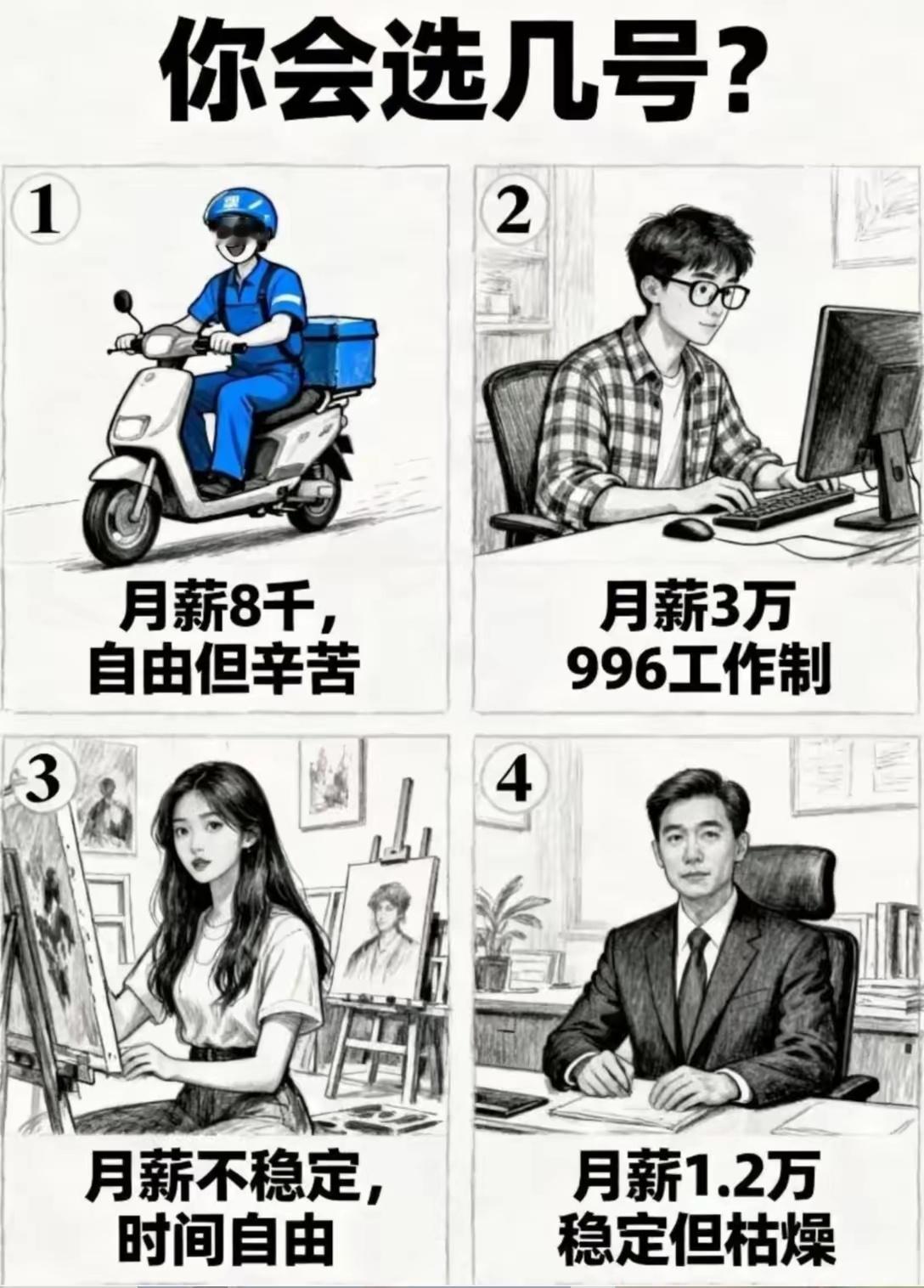 假如有机会从这四份工作里选一份,你会选哪一种?