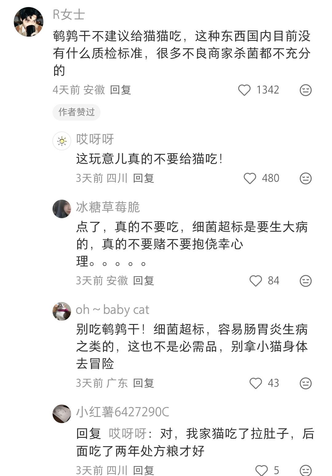 评论说这种小猫零食鹌鹑干不能吃啊