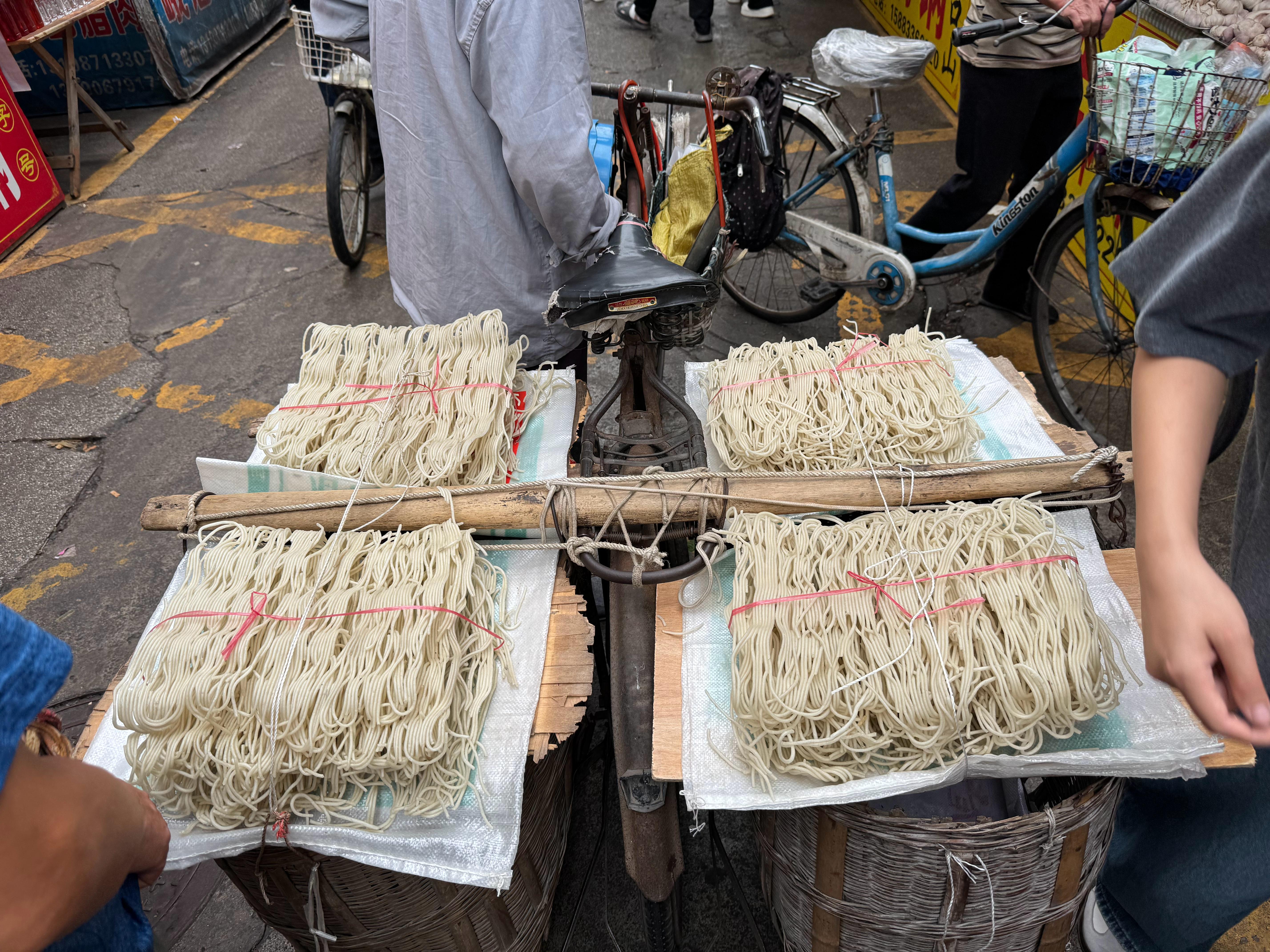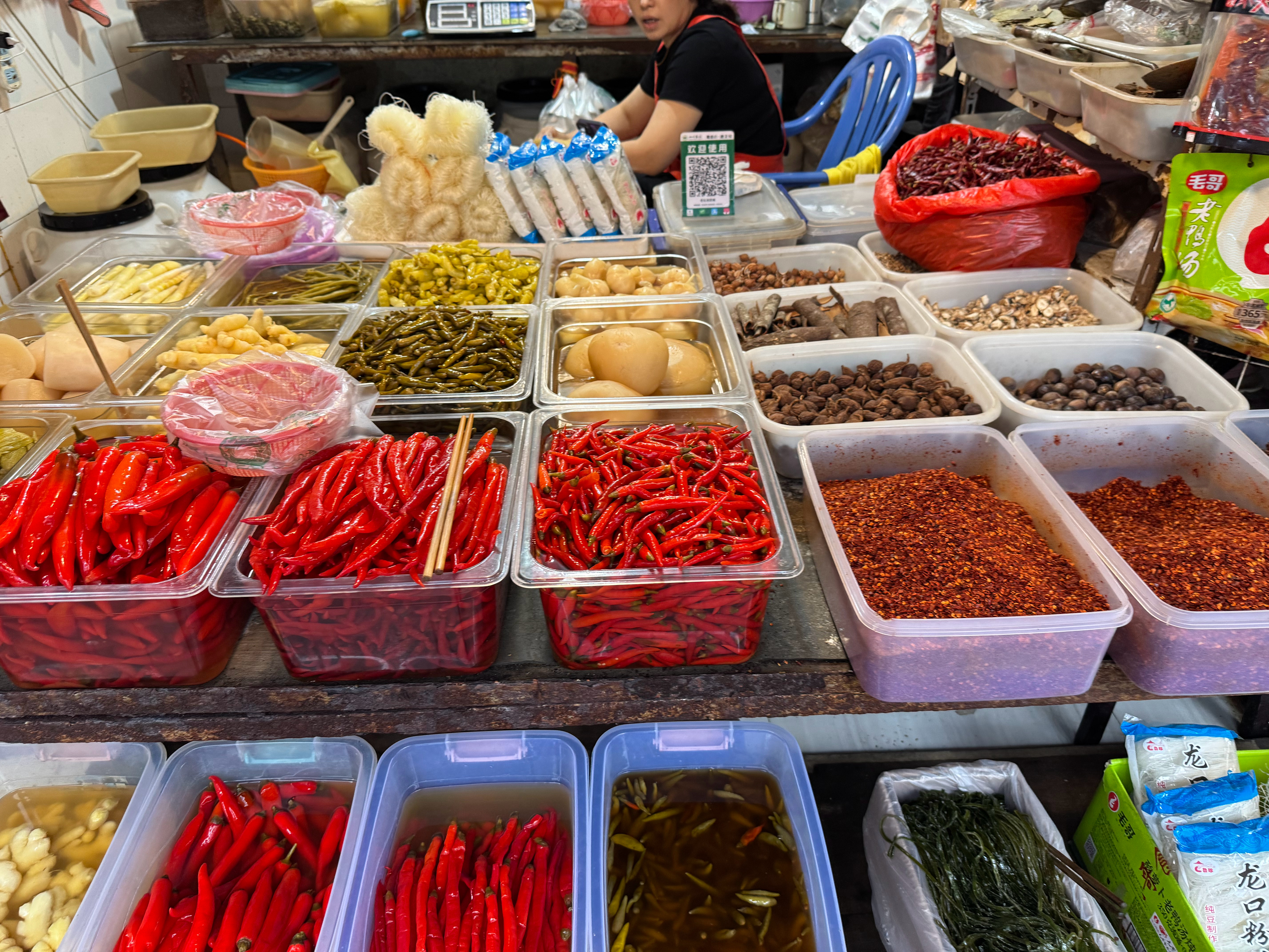 那个综合菜市场规模很大,最吸引人的是细分程度。一个卖辣椒的铺子,干辣椒、辣椒粉、花椒面能分出十几二十种,颜色、产地、辣度都不一样。说明需求足够大,也说明供应已经足够精细。那天我在那里买了一只甜皮鸭,是我吃过最好吃的一次。有人跟我说,虽然一条街上有七八家甜皮鸭,看起来很同质,但实际上大多数都很好吃,因为每家都在想办法做出一点自己的差别。这种竞争不是靠广告,而是靠手艺慢慢分出来的。