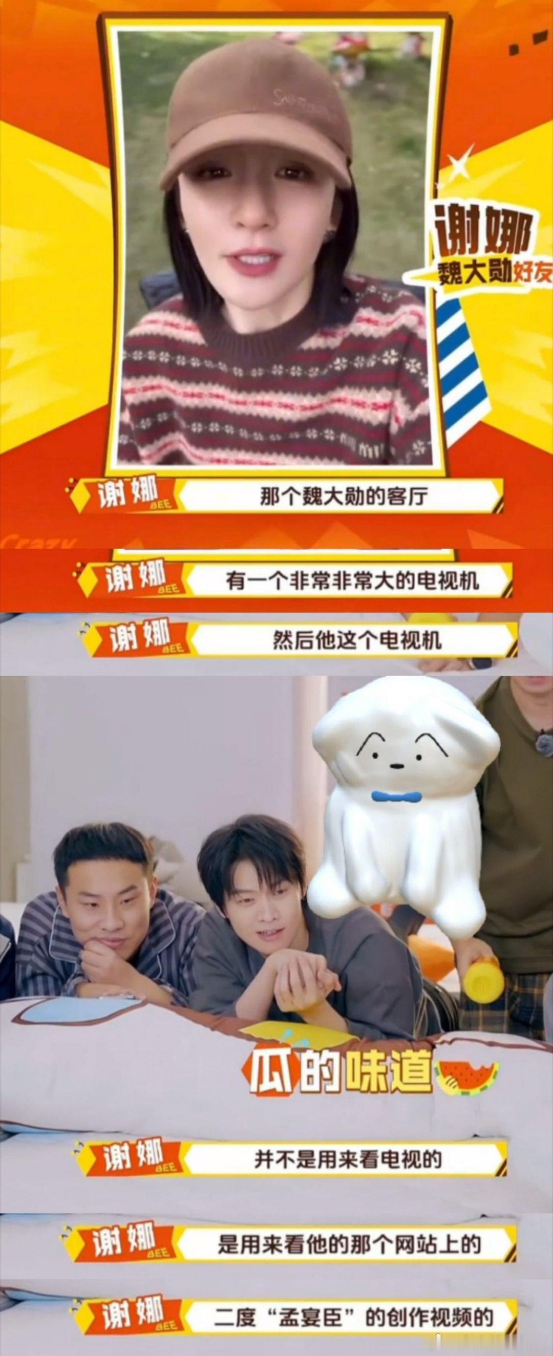魏大勋在家看孟宴臣二创周五晚高疯谢娜爆料魏大勋用大屏电视看孟宴臣二创,他赶紧说是爸爸爱看,这也太好笑了,简直是我的互联网嘴替!