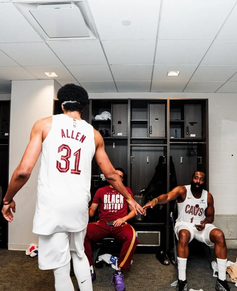 第一个、艾伦今天继续得吃得喝15中11高效砍下26分14篮板2助攻,自从哈登加盟后的5场比赛场均22.6分11.2篮板俨然已成为东部第一中锋,而哈登没来之前艾伦场均14.6分8.3篮板2助攻,相比之下哈登带来的提升肉眼可见,艾伦能否继续这样的神奇表现?我相信这是大概率事件,因为身边有个男人叫詹姆斯哈登。