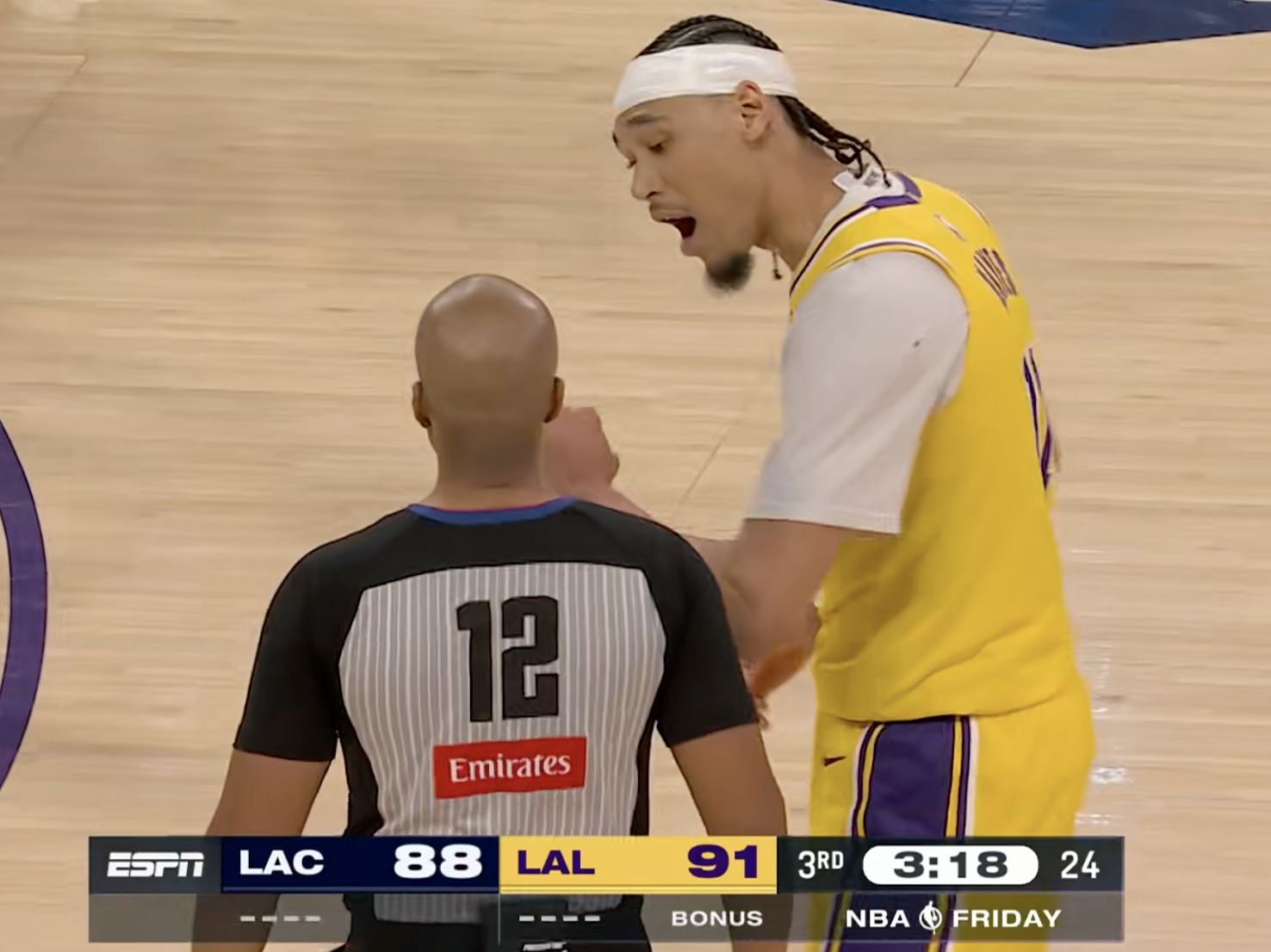 湖人今天第一球来自里夫斯。快船vs湖人