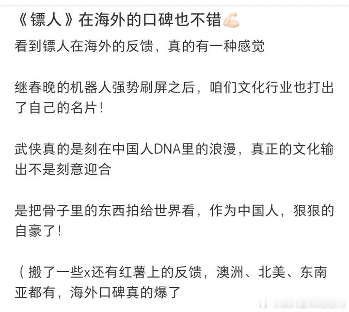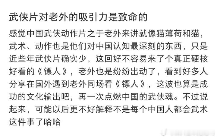 镖人还没到长安就已经走出海外了 看来出来我们镖人还是很火的,毕竟这里面一个个实景画面加上拳拳到肉的打戏,给人一种身临其境的感觉