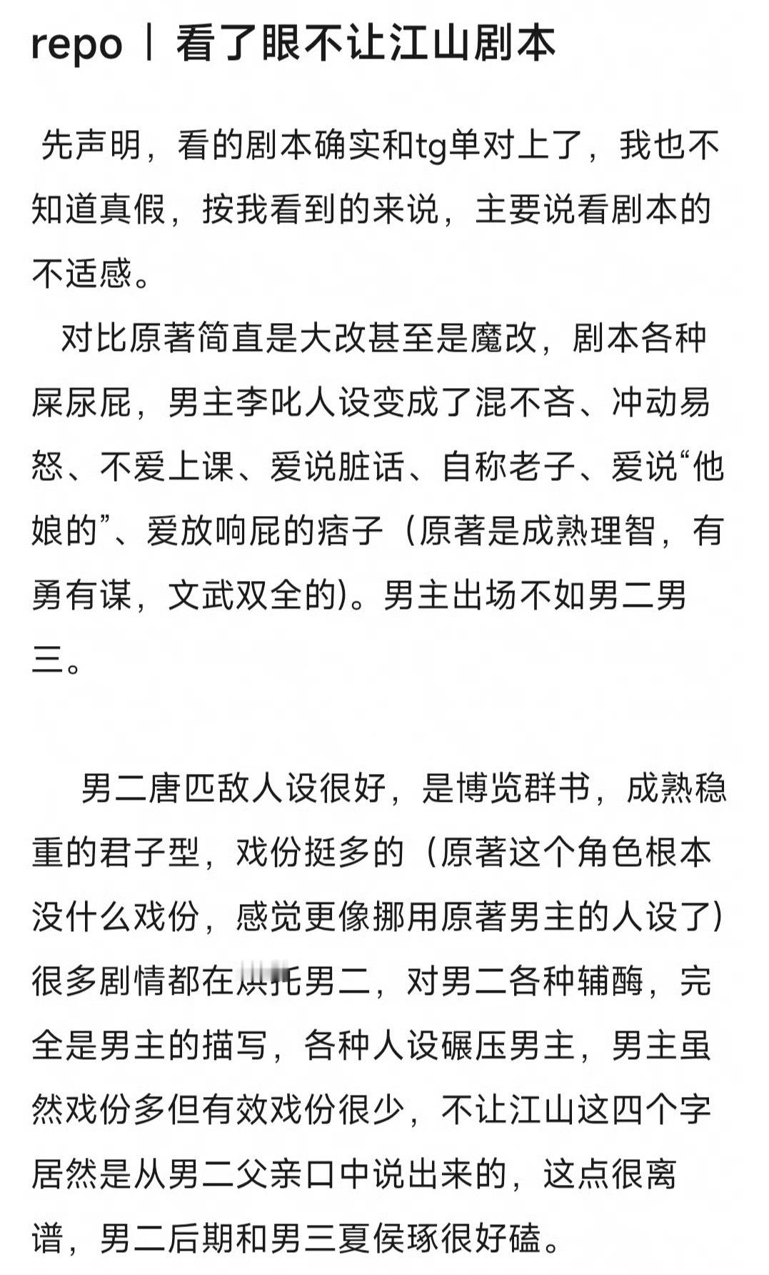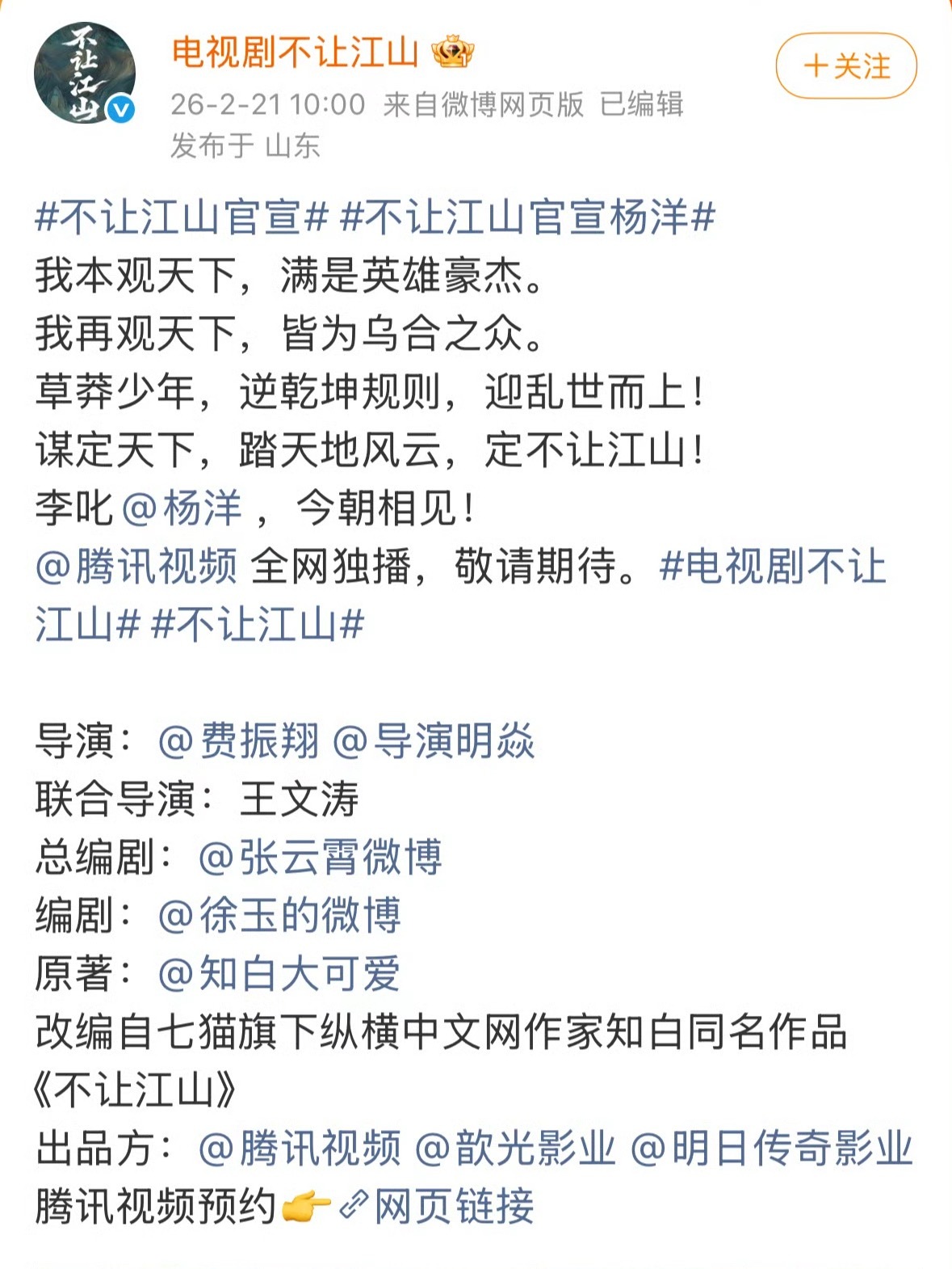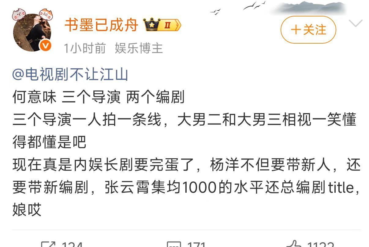 jsk街头献吻就给杨洋且了这样一个🫓啊加上费振翔组了三个导演,主创阵容很一般,感觉是平台让挂名带新人,看剧本repo男主人设有点幻视武动乾坤了,戏份拉表也不妙,男二男三麦麸线更是大雷,明天就开机了,团队为什么不早和脂粉通气不让江山官宣杨洋