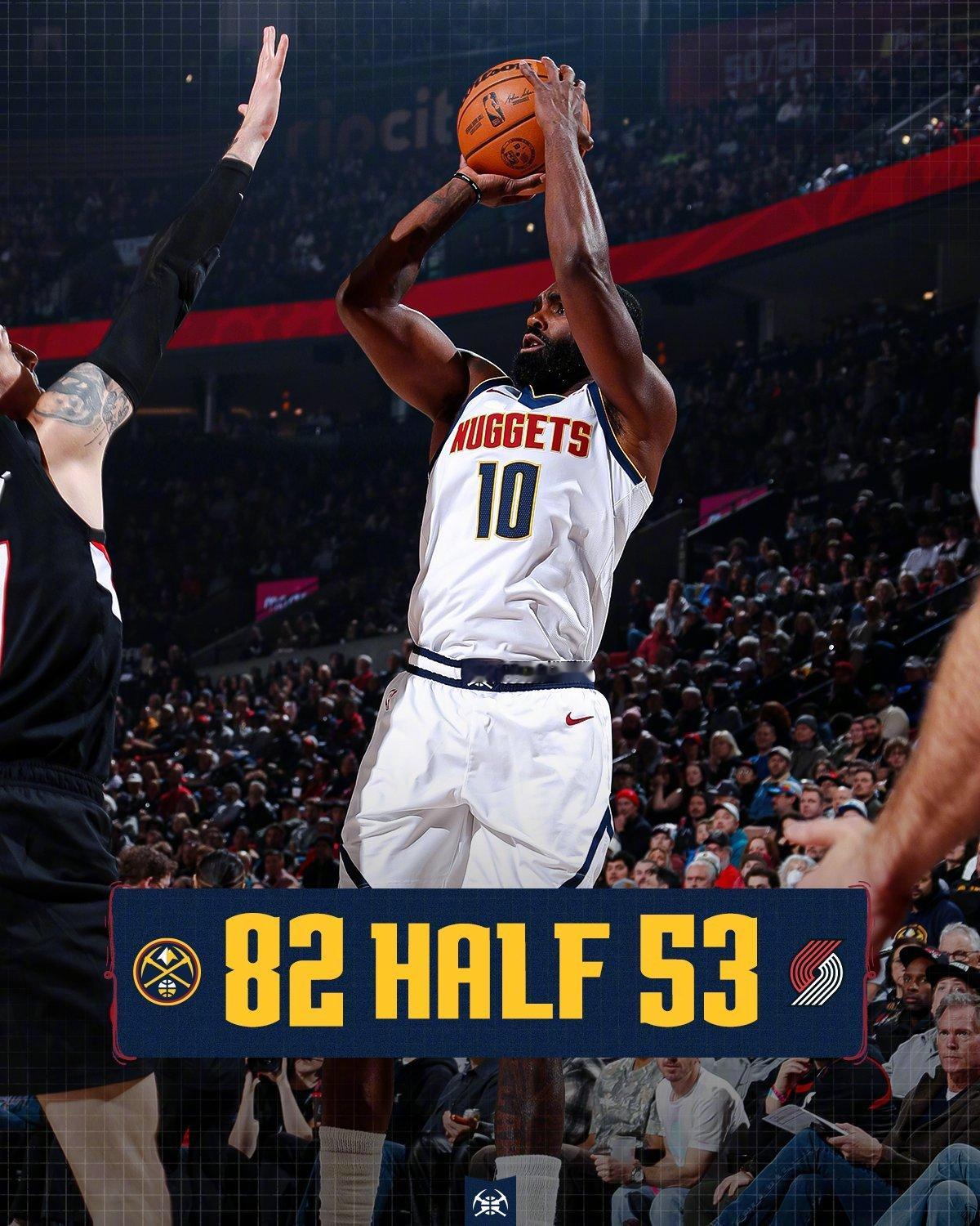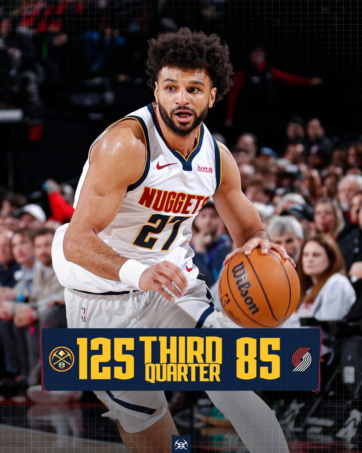 约基奇29分钟,15中10拿下32分9板7助4抢断,正负值+40。穆雷25分6板6助,小哈达威19分,斯特劳瑟19分,全队7人得分上双。