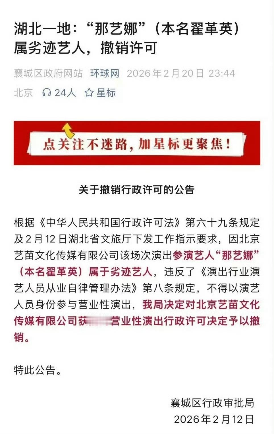 深夜传来消息,那艺娜被定性为劣迹艺人,不能再蹦跶了。