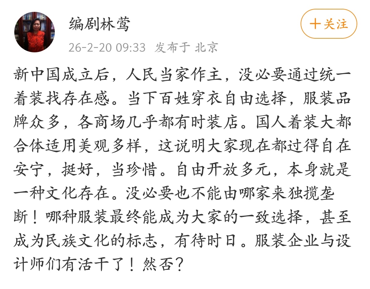 新中国成立后,人民当家作主,没必要通过统一着装找存在感。