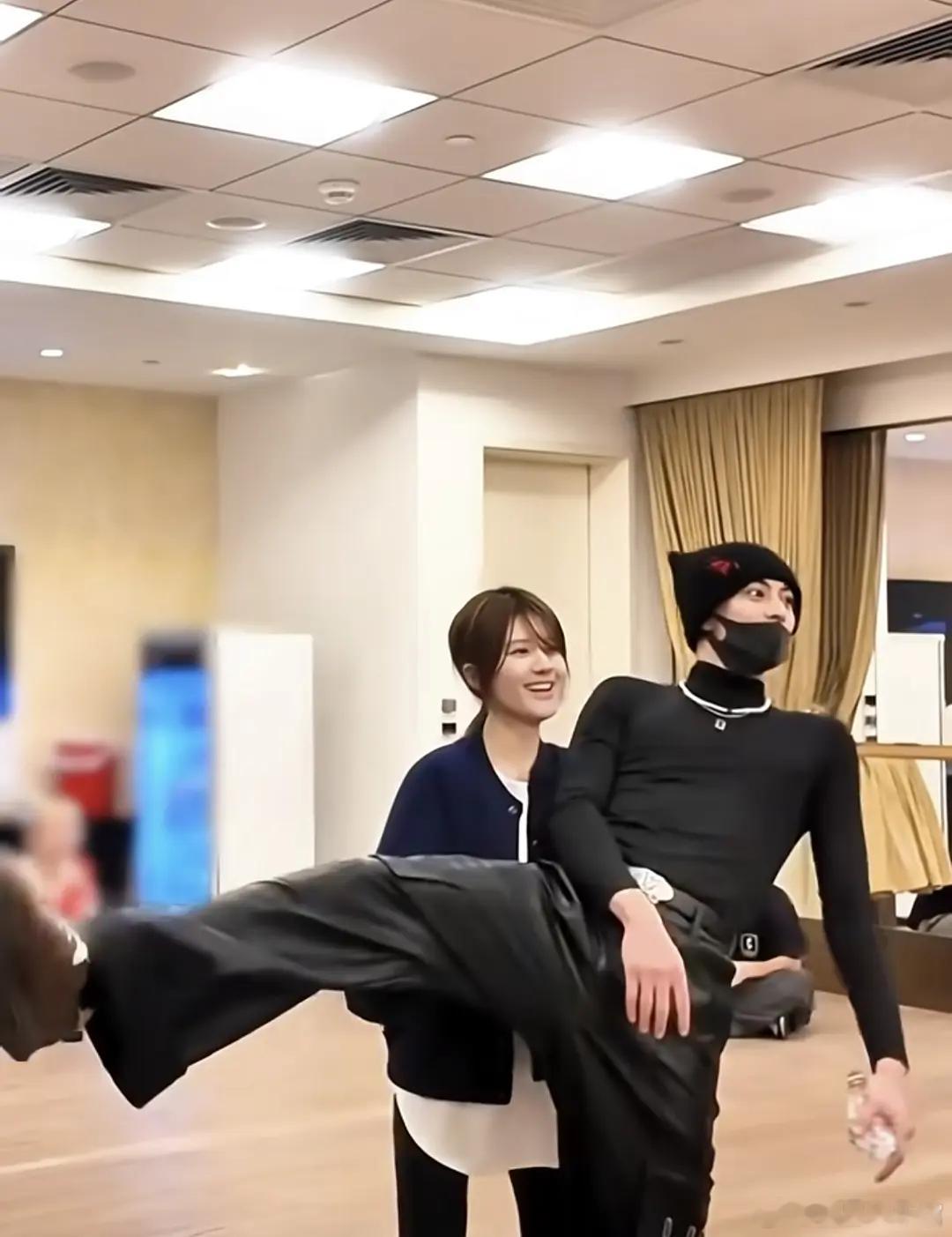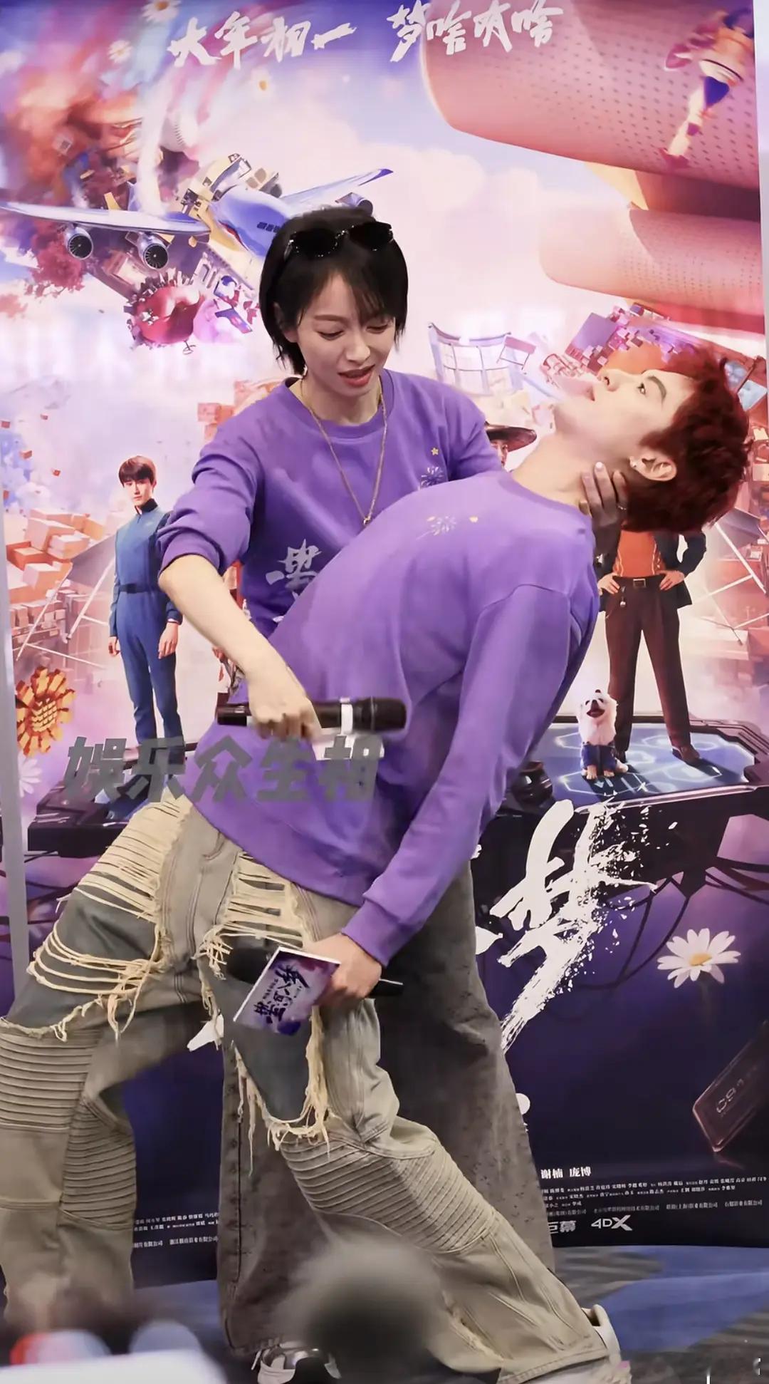 张天爱跟素人合影,胯真的好宽,大宅院似的