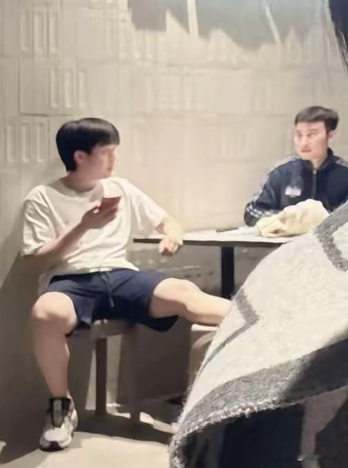 王楚钦赶路去吃饭时,遇到小朋友上前想要签名,他轻声说明要去用餐,礼貌婉拒了请求。现场人多眼杂,一旦开签,后面就会停不下来,不仅耽误吃饭休息,还容易造成拥挤,这份分寸感其实很清醒。 换了新发型的他,少年感直接拉满,白上衣配短裤,清爽又干净。等餐间隙随意坐着,长腿放松搭在椅边,没有赛场的紧绷感,整个人松弛又自在,气场舒服极了。