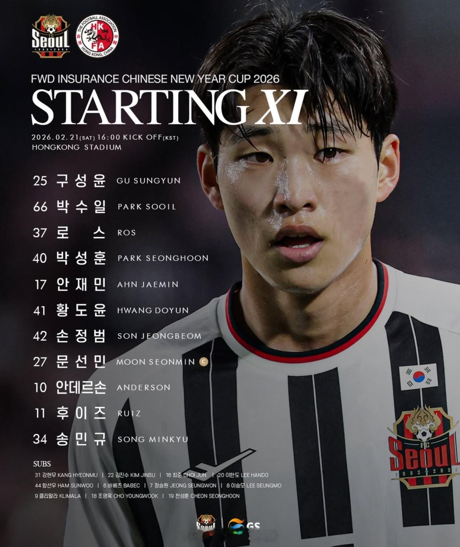 大年初五,贺岁杯中国香港vsFC首尔。首尔公布首发阵容,天津津门虎旧将罗斯首