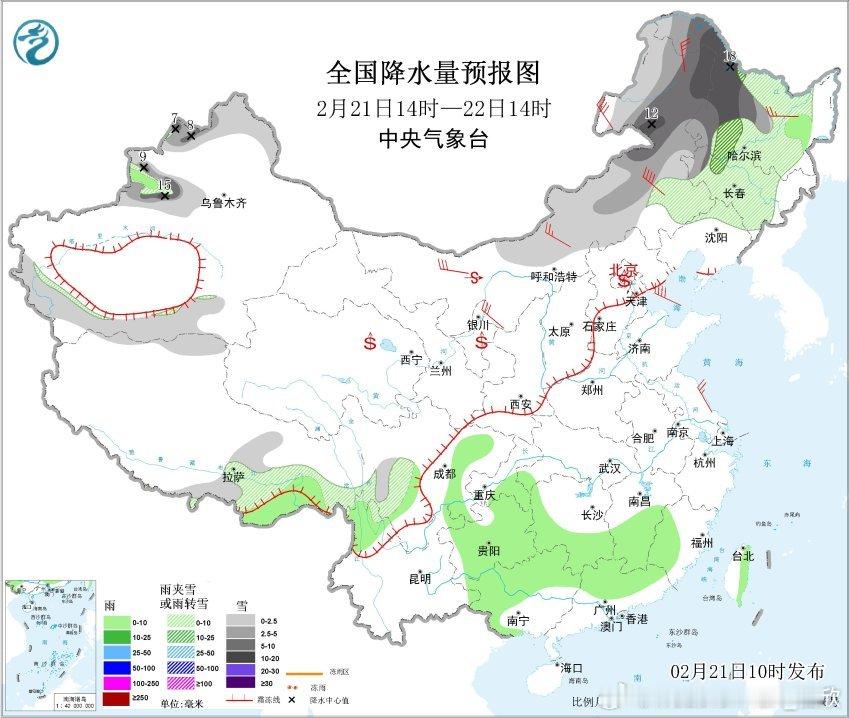 今天下午到明天中午,南北方降水均增多。其中内蒙古东北部、黑龙江西部、吉林西部、新疆北疆西部等地部分地区有大雪,其中,内蒙古东北部、黑龙江西北部等地部分地区有暴雪(10~18毫米)。上述部分地区新增积雪深度6~10厘米,局地可达15厘米以上。