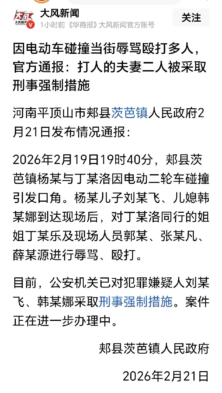 看到茨芭镇政府的情况通报,至少让关心这次恶性打人事件的公众,看到了对打人者的初步惩罚“刑事强制措施”。 下一步这对打人夫妇还将受到什么样的法律惩罚,公众拭目以待!