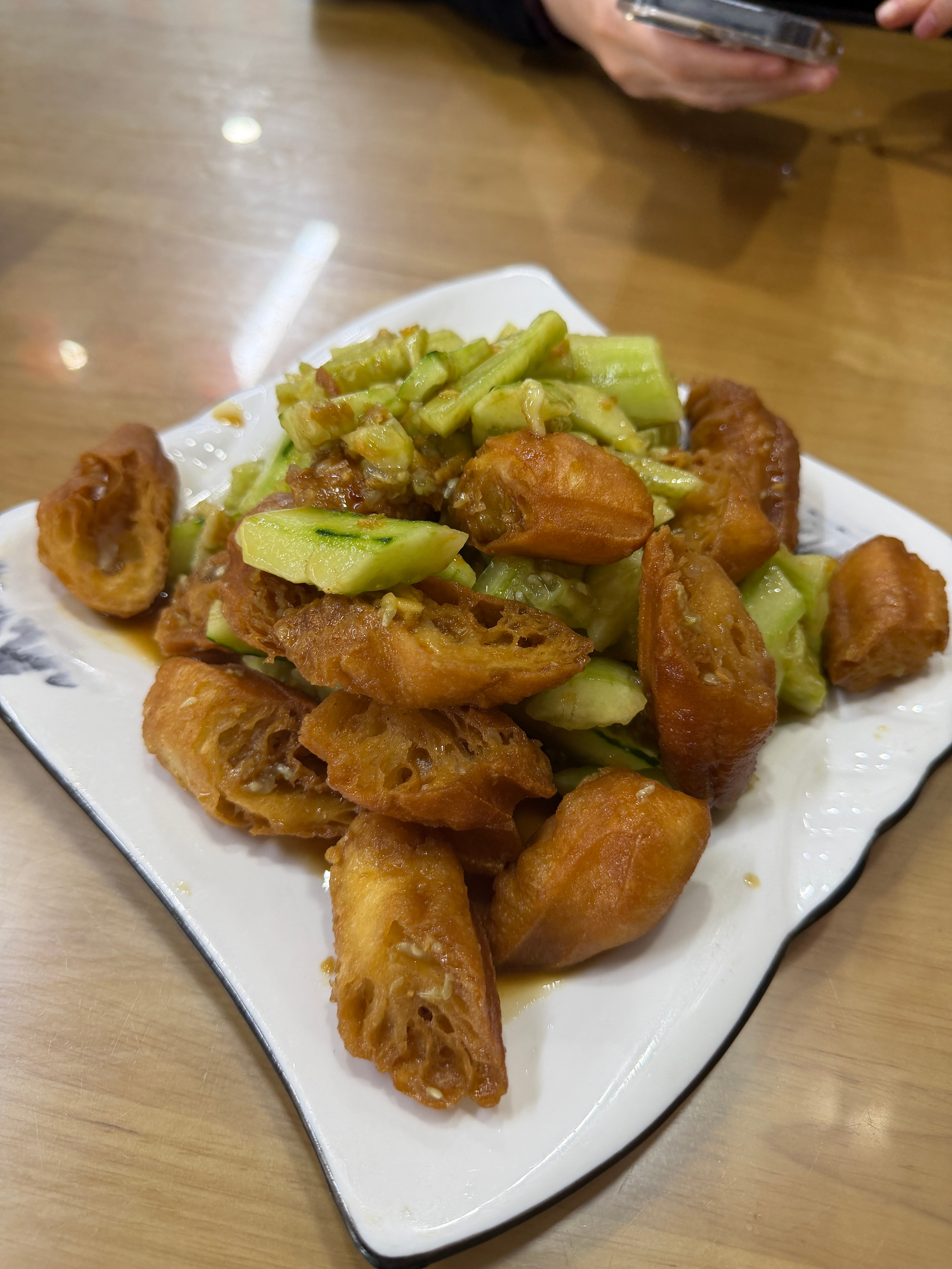 这个炸油条办黄瓜是第一次吃,无比好吃。 泰安