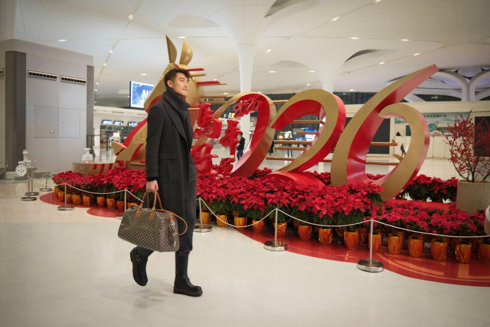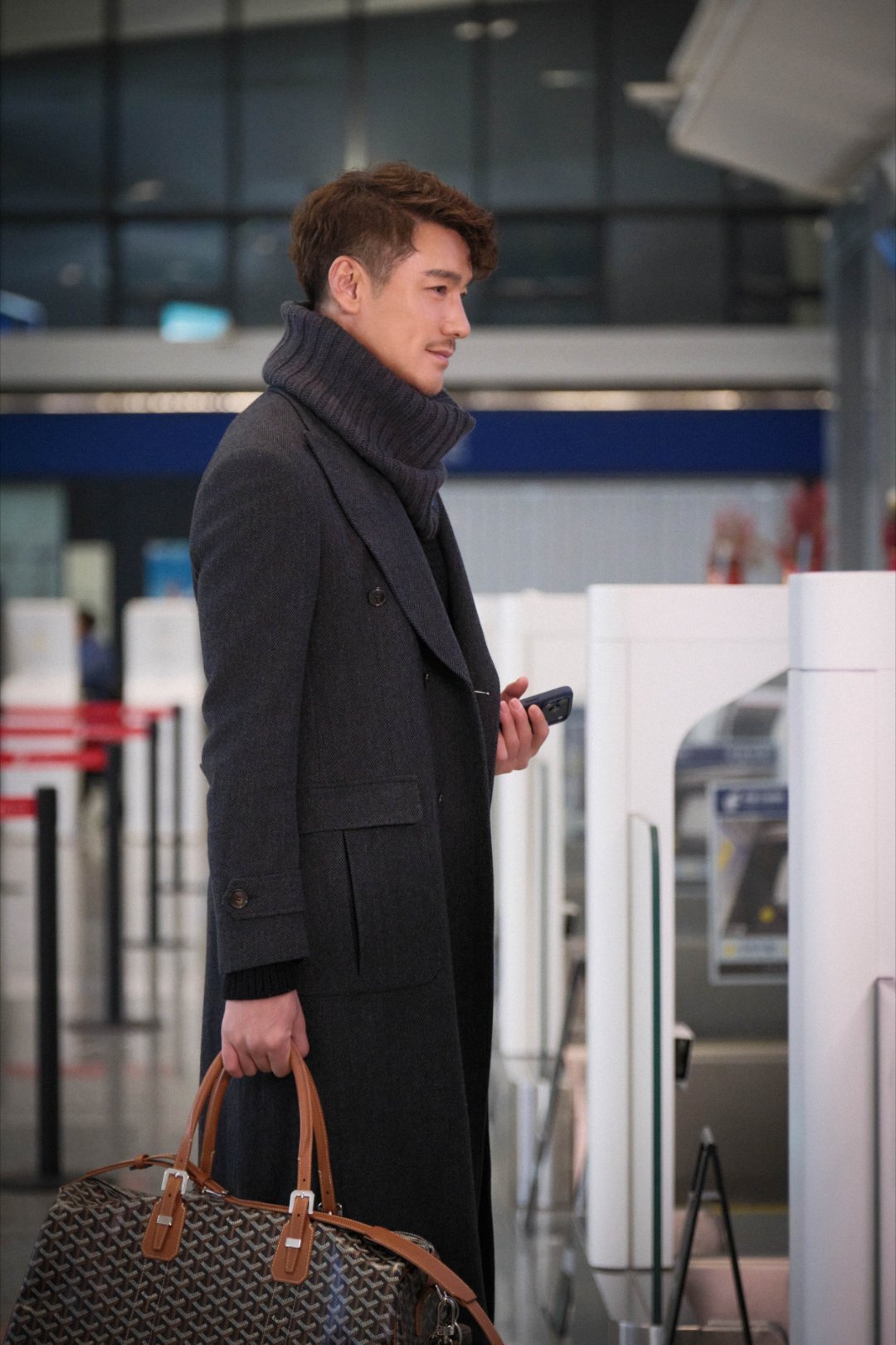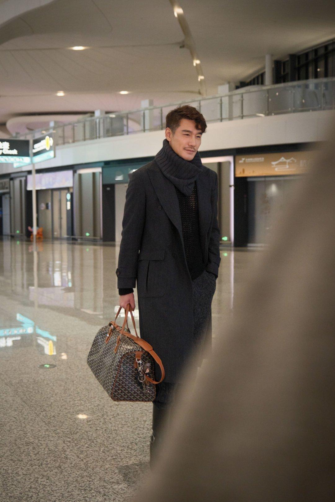 胡兵毛秋裤外穿走机场又被胡兵的穿搭圈粉!毛秋裤外穿随性又高级,不刻意追求潮流,