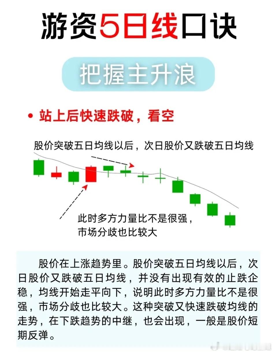 在A股市场,5日均线是游资操盘的核心参考线,它不仅是短期趋势的“晴雨表”,更是判断主力意图的关键信号。今天就把这套游资常用的5日线口诀拆解给你,学会了就能精准把握主升浪,避开主力陷阱。