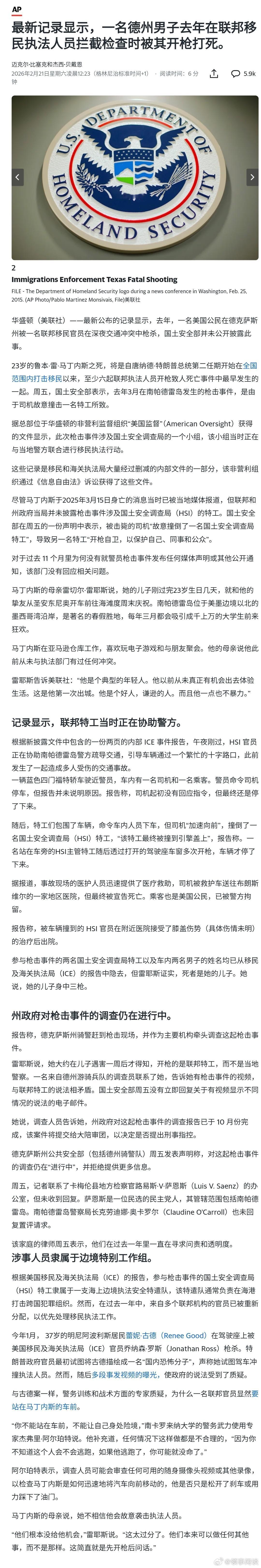 【ICE 执法杀死一名美国公民】