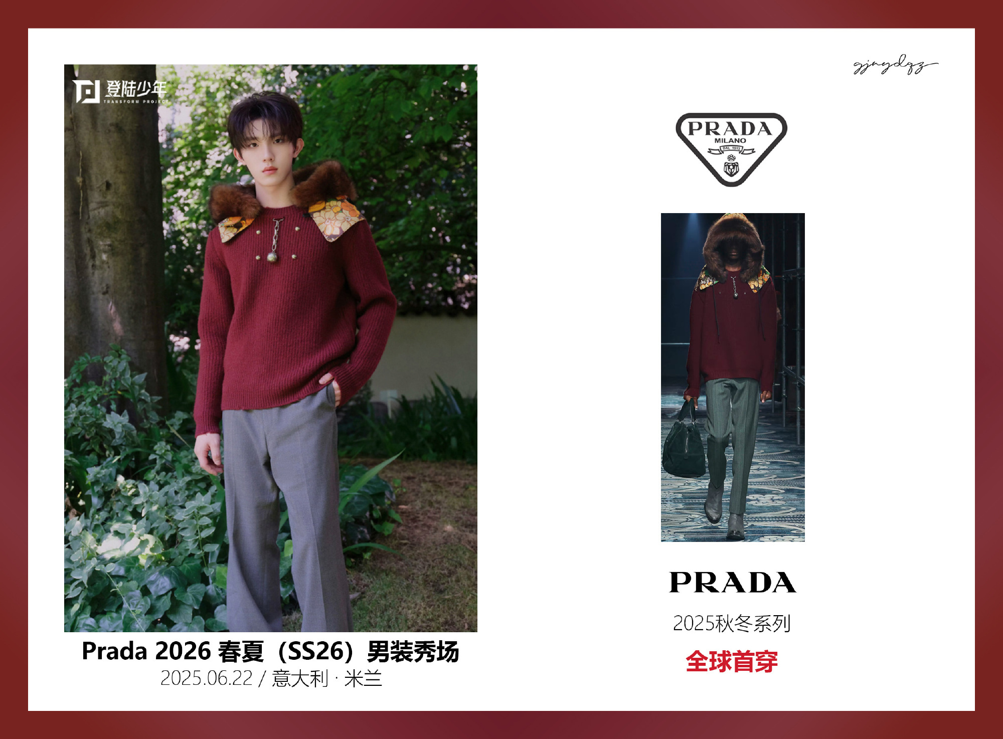 苏新皓和Prada2025年的所有合作多次上身代言人大使主推款,数次上身未发售超季,可以说Prada十分重视给新生代代表苏新皓的搭配,期待接下来的米兰之行苏新皓prada