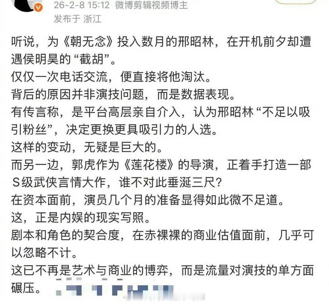 都快成素人的湖湖,说一番扛剧爆剧N部无缝进组的侯明昊截胡,快笑s了..