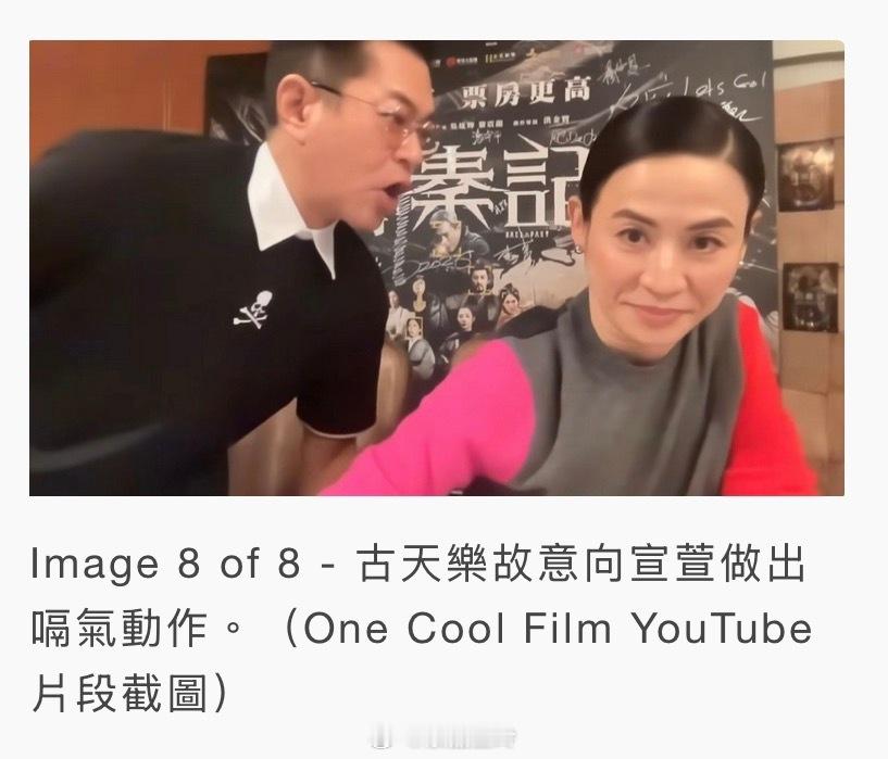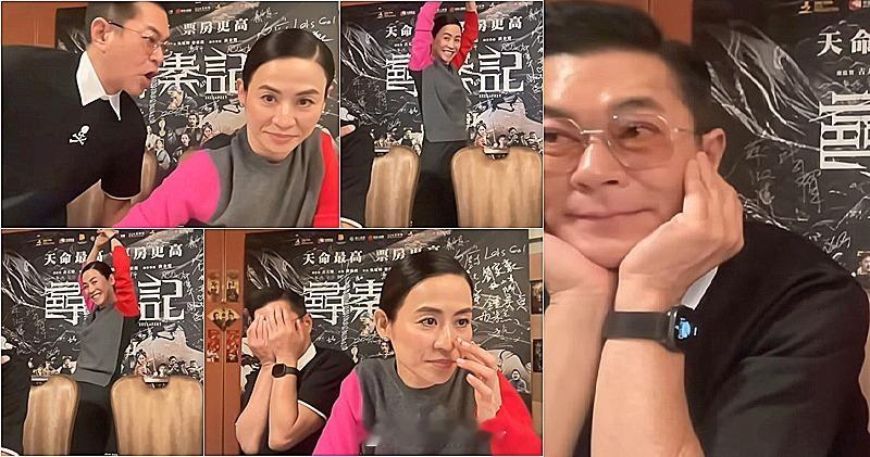 古天樂、宣萱今日凌晨在網上開直播陪觀眾看劇集《尋秦記》重播,兩人在直播期間不時古靈精怪,頻頻搞笑互動。(One Cool Film YouTube片段截圖 / 明報製圖)