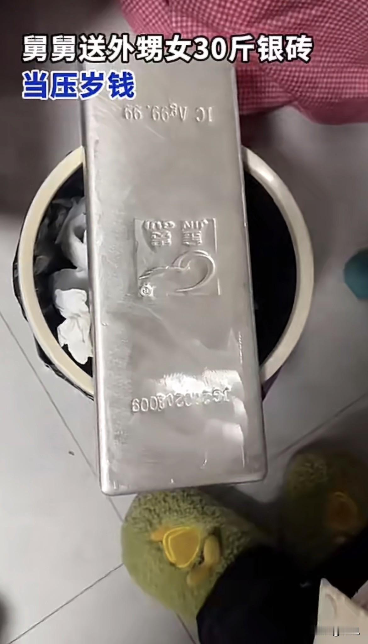 绝了!山东临沂这家人过个年,差点因为一块30斤的银砖上了社会新闻头条。 大年三十晚上,一家人刚吃完年夜饭,气氛正热闹着。舅舅那天喝得脸红扑扑的,看着满屋子人高兴。他那个5岁的小外甥女,乖巧地走过来,往地上一跪,小脑袋磕下去,嘴里念叨着拜年的吉祥话,给舅舅讨压岁钱。 舅舅一看这孩子这么懂事,乐得嘴都合不拢了。他大手一挥,对着孩子说:给舅舅磕头拜年,舅舅送你个大宝贝! 说完晃晃悠悠站起身,拽着孩子就往外走。一帮大人还纳闷呢,这是要干啥? 结果舅舅打开车门,弯腰一使劲,从车里抱下来一个沉甸甸的东西。好家伙,一块大银砖,实打实的30斤重! 据家里人说,这块银子按当时的市价算,值三十多万。舅舅抱着这块银砖,当着全家人的面跟外甥女说:磕头了,这块银子就是你的了! 一个5岁的孩子,可能对三十万没什么概念,但她知道这是舅舅给的好东西,高兴得不行。视频里她双手抱着那块银砖,脸上表情又惊喜又吃力,那个画面把在场的人都看愣了。 这哪是压岁钱,这是压岁砖啊! 第二天,酒醒了。 家里人坐在一起商量,都觉得这东西太贵重了,不能收。孩子父母觉得,这份心意太重了,孩子承受不起,也怕给舅舅造成负担。 最后还是把银砖还给了舅舅。 舅舅也没让外甥女空着手回去,换了一块几十克的小银砖,上面还刻着“压岁钱”三个字,价值一千多块钱。这结局,圆满了。 这事传到网上,评论区炸了锅。 有网友开玩笑:这舅舅明显是前阵子被套牢了,明年拿好酒使劲让他喝! 有人调侃舅舅送银砖可能是借酒劲儿处理存货。 更多人排队喊话:舅舅还缺不缺外甥女,现在报名还来不来得及? 还有网友说:估计是真喝大了,第二天自己都不记得搬过这么重的东西。 有个评论挺逗:这要是金砖,估计家长就不还了。虽然是玩笑话,但也透着一股实在劲儿。 从法律角度讲,这30斤银砖一旦送出去,还真就是孩子的了。但有律师也说过,对于八周岁以下的孩子,接受贵重礼物需要监护人同意或追认,监护人完全有权利替孩子做这个主。 法律是法律,人情是人情。 家长退回去,不是不懂法,是太懂事了。而且家长退回去,不是不领舅舅的情,恰恰是太领情了,才不能让这份情变成负担。 看完这事,心里其实挺暖的。不是因为那块银砖值多少钱,而是这一家人处理这事的方式。 舅舅敢送,是真疼这个孩子,酒劲上来了,几十万的东西说拿就拿,这份心意藏不住。家长敢还,也是真懂事,再贵重也是亲戚,不能让人家破费到这个份上。最后舅舅又补了一块小的,这事就圆满了,谁也没尴尬,谁也没吃亏,情分还在那儿,甚至还更深了。 年过的是啥?过的就是这个人情味儿。 但这个味儿,得刚刚好。太淡了没意思,太浓了又呛得慌。就像这家人,一个敢给,一个敢收,然后又还了,最后落在一个彼此都舒服的位置上。 那个5岁的小姑娘,可能很多年后才会真正明白,那个大年三十的晚上,舅舅抱出来的不只是30斤银子,还有一份沉甸甸的宠爱。而她的爸妈帮她退回去的,也不只是一块银砖,还有一份成年人之间才能读懂的分寸感。 大家过年遇到过这种“硬核”长辈吗?如果你是这个家长,这银砖是收还是不收?