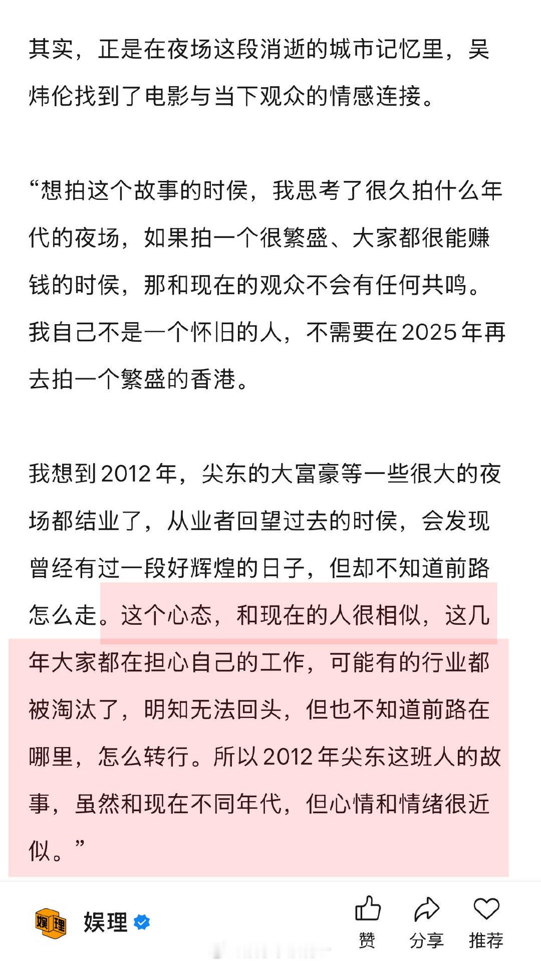 春节档需要夜王这样的喜剧 夜王女性群像 夜场是高度发达的城市经济文化的一个缩影。“一个城市有多繁荣,一个看的士司机有多忙,另一个就是看夜场”。随着时代的发展,传统夜场逐渐被私人会所取代,曾经繁荣的夜场一去不复返。当下再谈论夜场,谈论的其实是一个消失的业态、一段城市的回忆…娱理独家↓