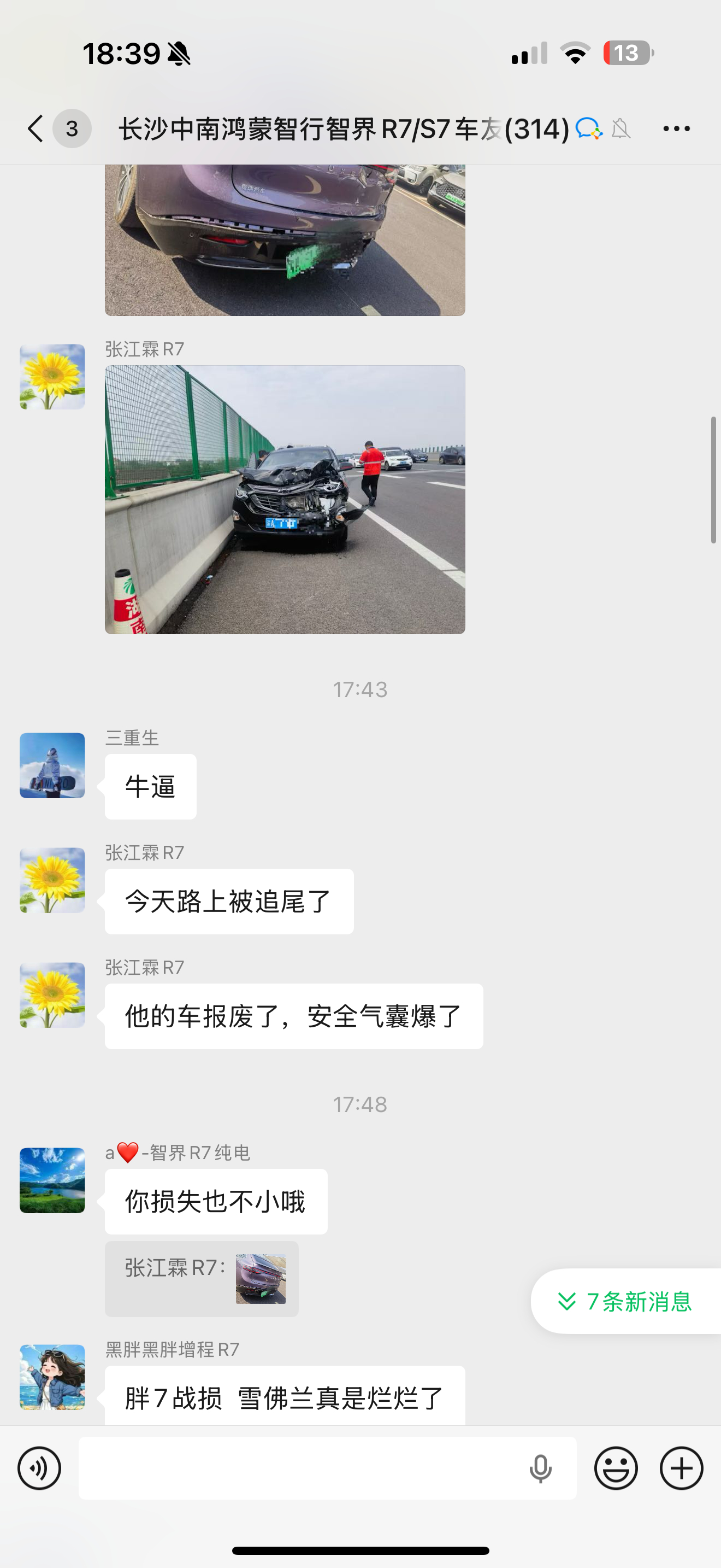 群友发的,智界R7真硬啊,被雪佛兰追尾,雪佛兰爆炸气囊漏油漏水全损了。他的R7看起来问题不是很大