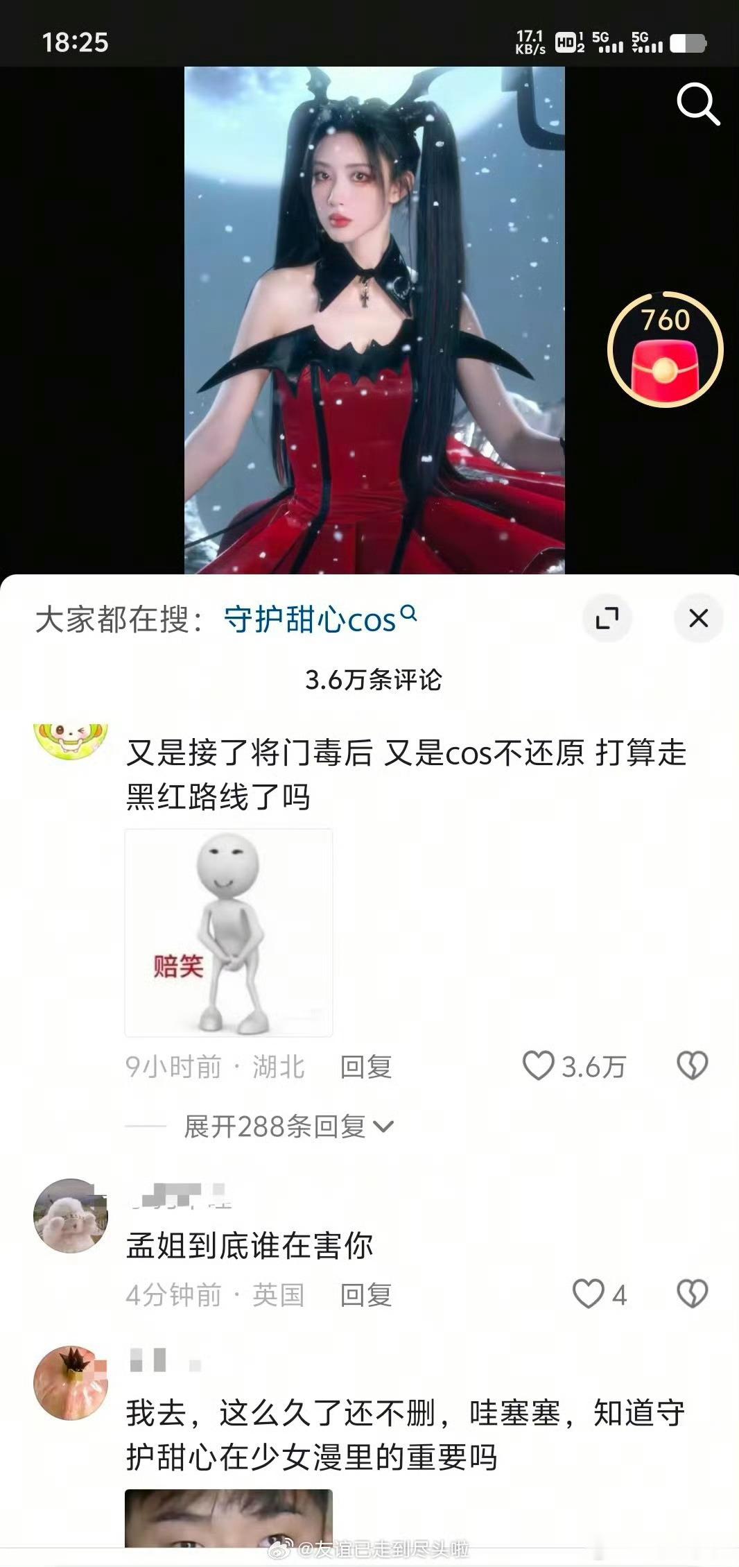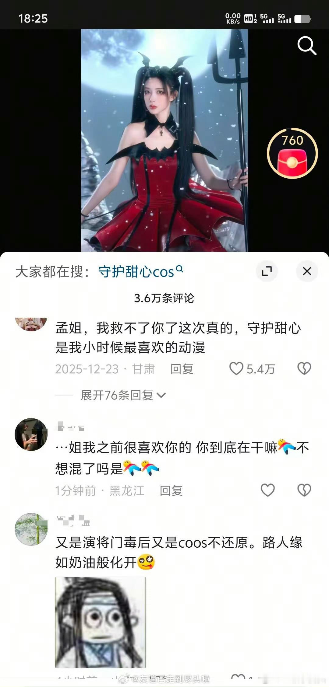 孟子义去年12月cos守护甜心的视频,这两天被抖人冲了。