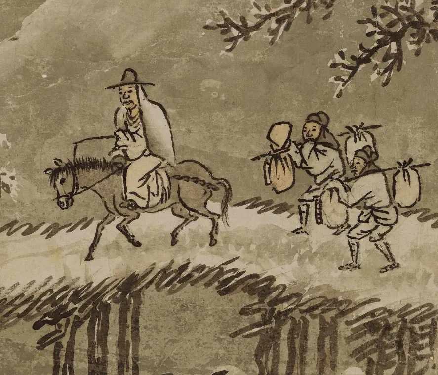 古画里的毛驴。忽忽千载过。而今,任何一个代步工具都胜过驴子,但人们心里仍然渴望有一个“驴背”,摇摇晃晃,徐徐前行,走一条清幽的小路,觅一个“诗意”的人生。驴几乎成了诗人们的灵感的钥匙,骑驴也成了一种文化。孟浩然骑驴踏雪寻梅,李贺骑驴觅句,孟郊骑驴苦吟,贾岛骑驴赋诗。杜甫更爱骑驴,他自称:“骑驴三十载,旅食京华春”。