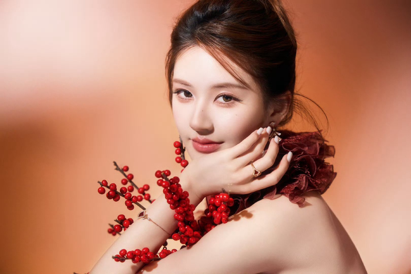 还以为秦岚是裸肩真空上阵呢,原来是还罩着一层纱