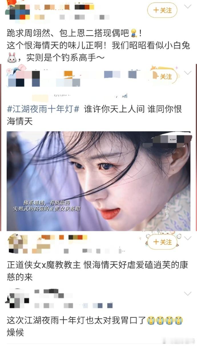 闻着恨海情天味儿我就来了周翊然、包上恩、李昀锐、万鹏这神仙阵容!《江湖夜雨十年灯》恨同根爱同源的设定简直太妙了,两对CP颜值爆表,演技还都超在线,感觉每一帧都能截下来当壁纸,疯狂期待正片!