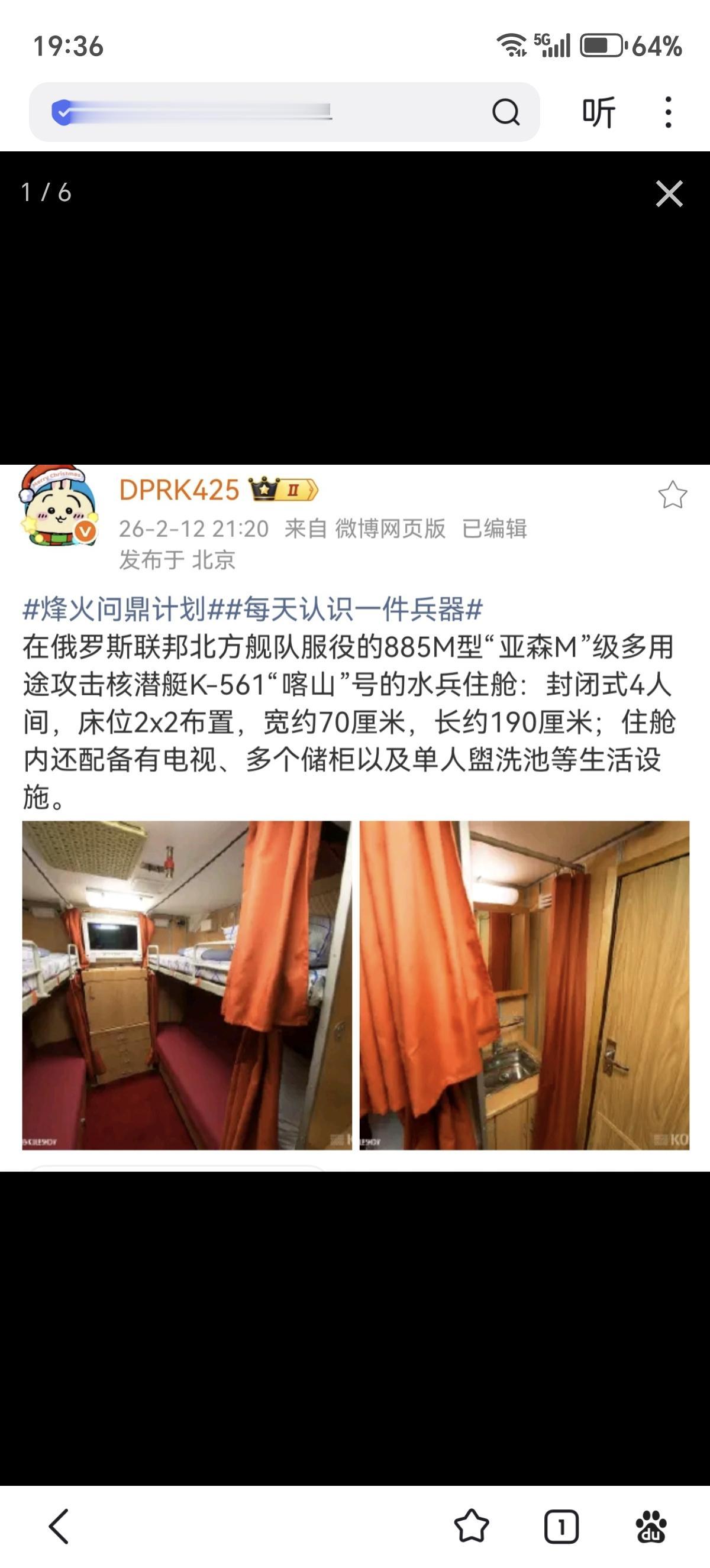 不得不说潜艇设计享受这一块还是毛子厉害。 满排接近14000吨的亚森M级,艇员人数只有85-95名。图1 图2 是亚森M的普通水兵四人空调软卧包厢,和亚森M的桑拿房。 而满排7700吨的弗吉尼亚级,艇员为140-150名,卧铺数量为112个(其中包括军官卧铺),普通水兵只能热铺轮换。 图3 图4 是弗吉尼亚级军官三人间卧铺,一名军官甚至只能睡地上铺位,可以和前面亚森M的普通水兵软卧对比一下。 图5 图6 是弗吉尼亚的普通水兵热铺,基本上只能两个人分一个铺位,互相轮换睡,以及睡鱼雷旁边,睡鱼雷旁边都算是很舒服了。 毛子潜艇一贯喜欢搞自动化设计来压缩人数,改善居住环境,而老美的潜艇则是一贯喜欢运奴船。