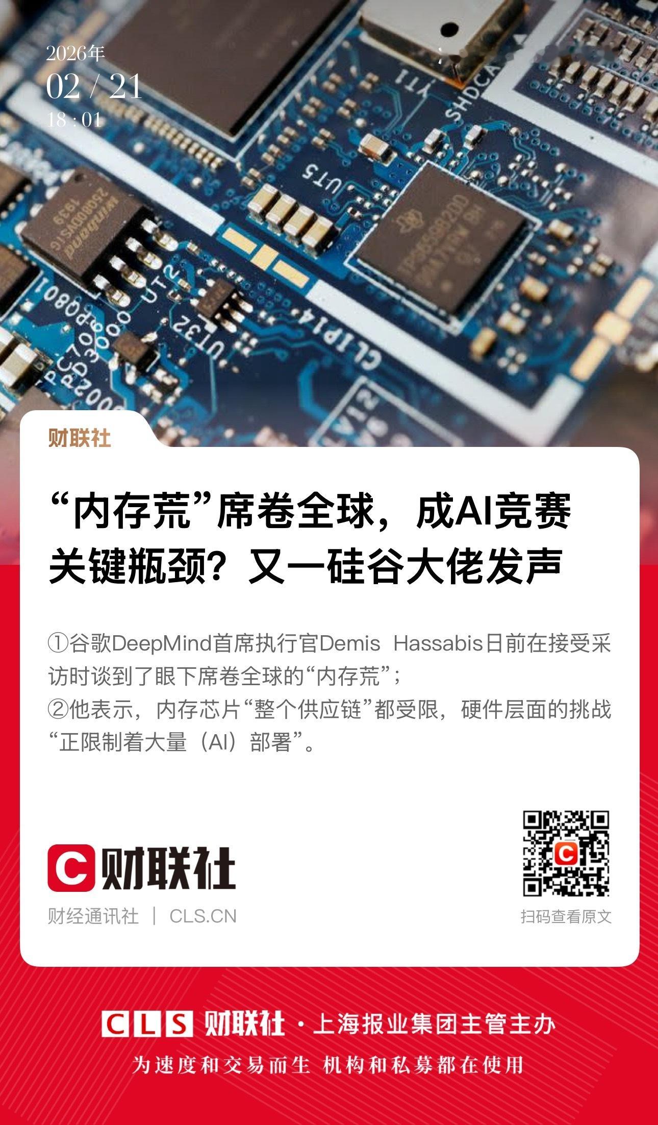 『 要点:谷歌DeepMind首席执行官Demis Hassabis日前在接受采访时谈到了眼下席卷全球的“内存荒”; 他表示,内存芯片“整个供应链”都受限,硬件层面的挑战“正限制着大量(AI)部署”。 』