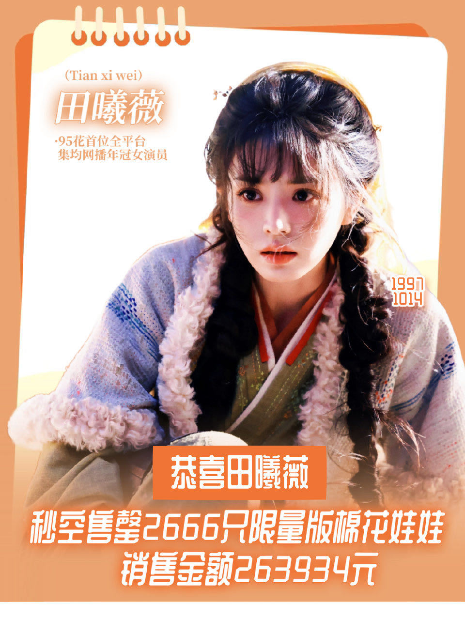 田曦薇粉丝18:00开售2666只棉花娃娃不到一分钟秒空🥹太厉害了田曦薇