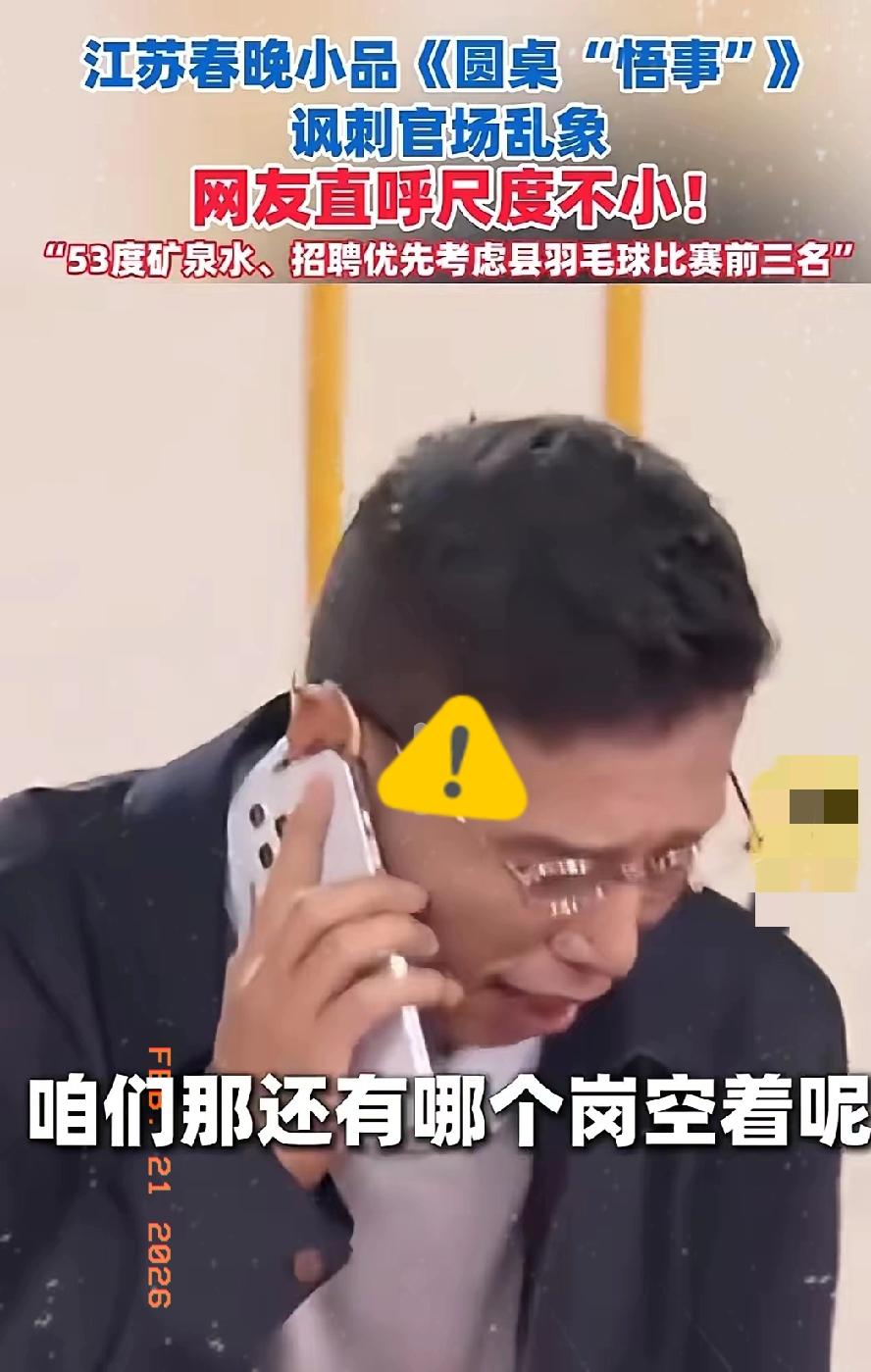 江苏卫视真牛,贾旭明也真敢演啊! 贾局长:那个谁,把招聘条件改一下,年龄24-26岁,本科学历,优先考虑在县羽毛球赛拿过前3名的。 看似滑稽的台词,却精准戳中了很多人心里最真实的痛点,这哪里是小品,分明是现实的照妖镜。 笑完之后只剩扎心,好的喜剧从不是装傻卖萌,而是敢把藏在台面下的事儿,光明正大地讲出来。贾旭明这段表演,尺度够大、底气够足,观众的掌声就是最好的认可。 不少人看完都感慨,不是没有好小品好演员,而是缺少敢说真话的舞台。江苏卫视这波操作,直接赢麻了,也让大家看到喜剧该有的样子。 你觉得这样敢说敢演的作品,该不该多上几个主流舞台?