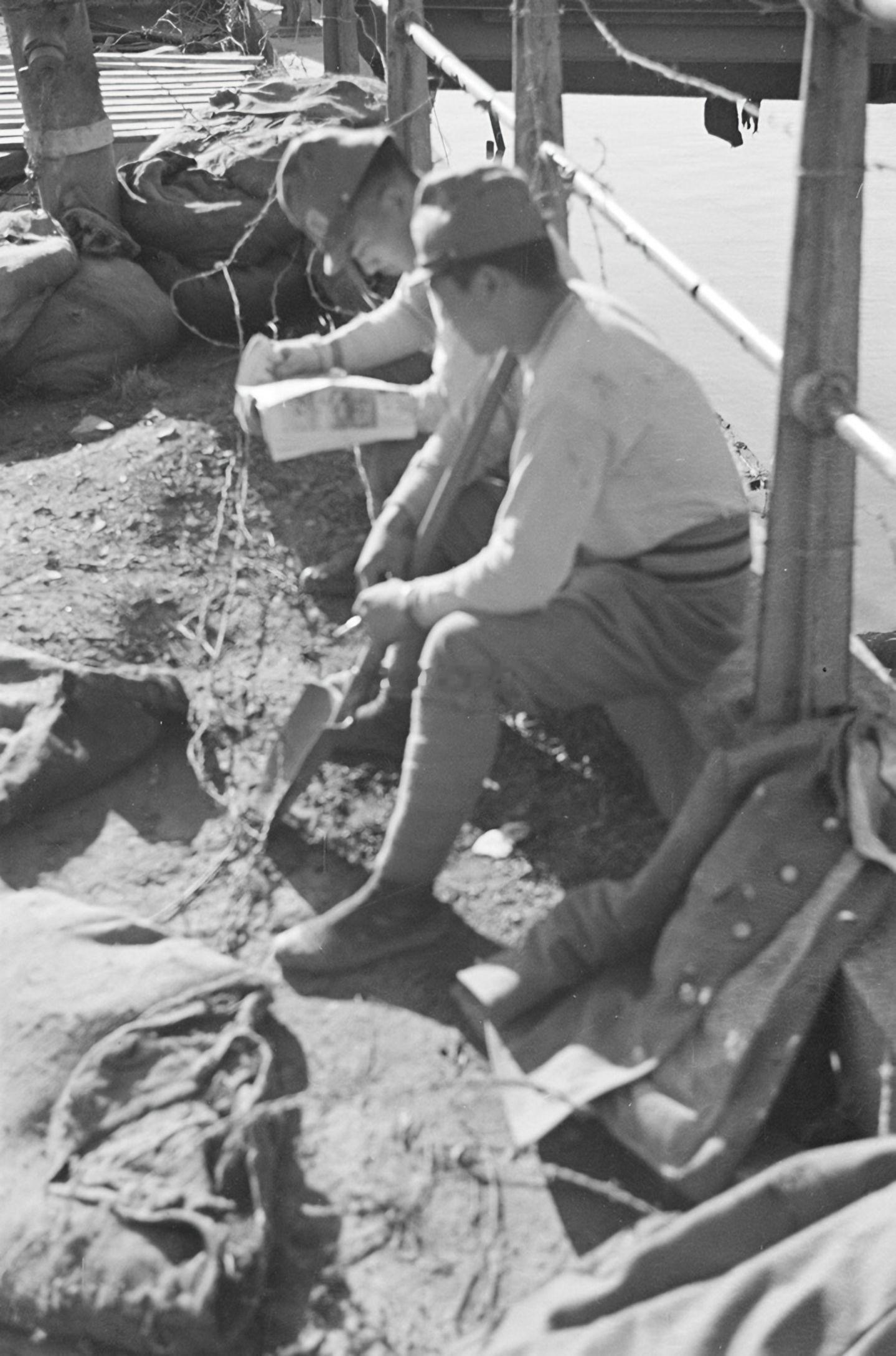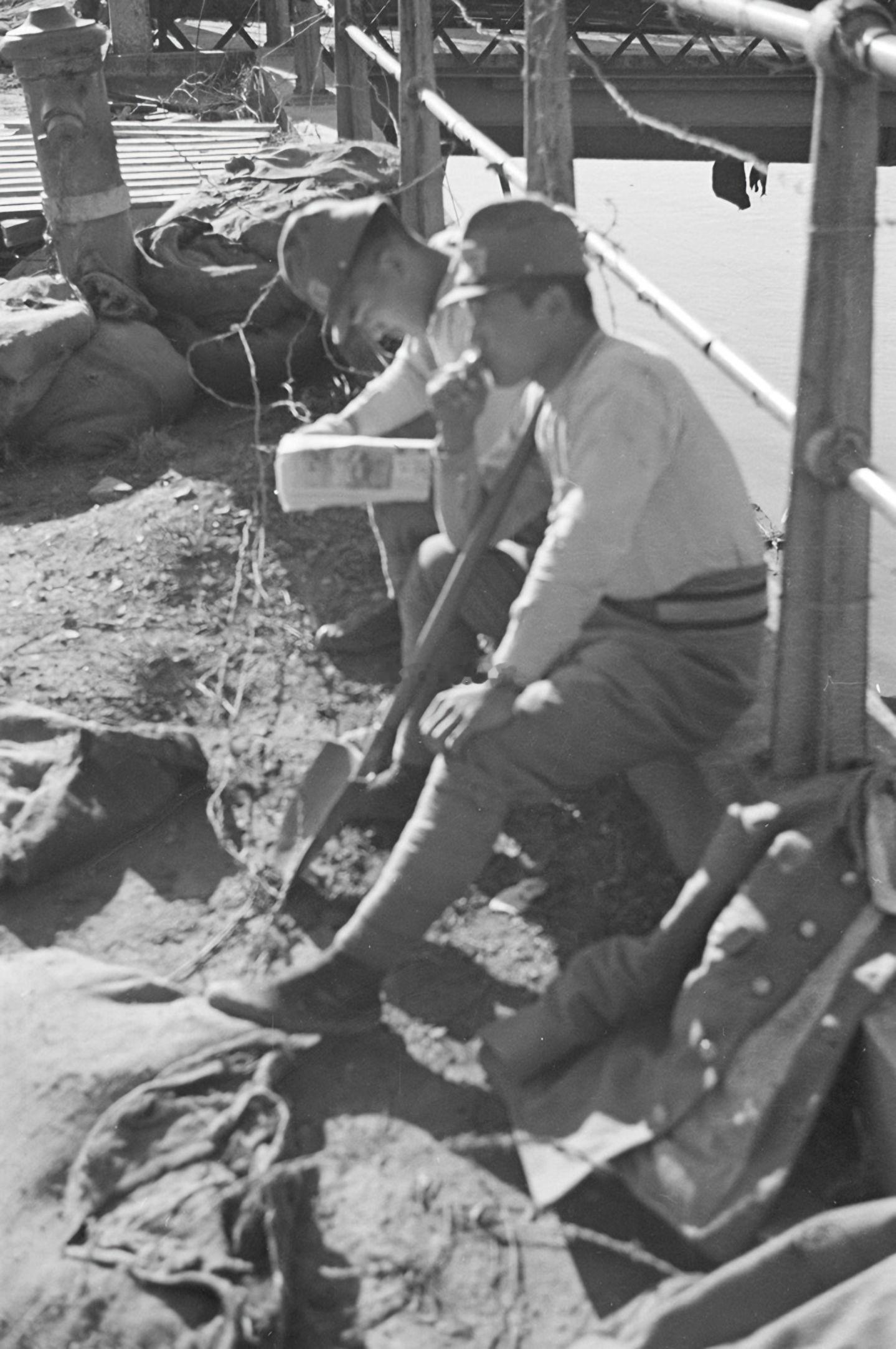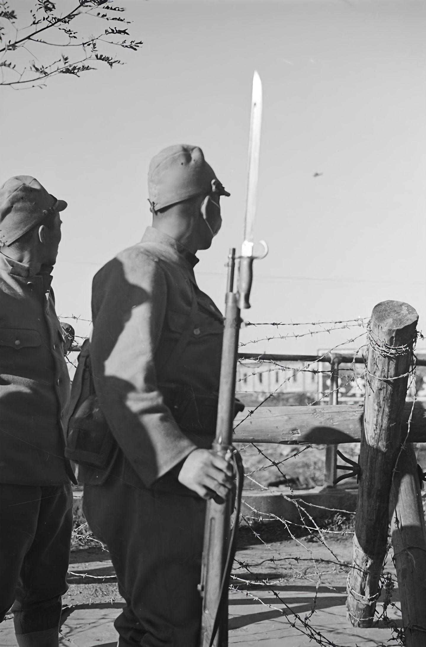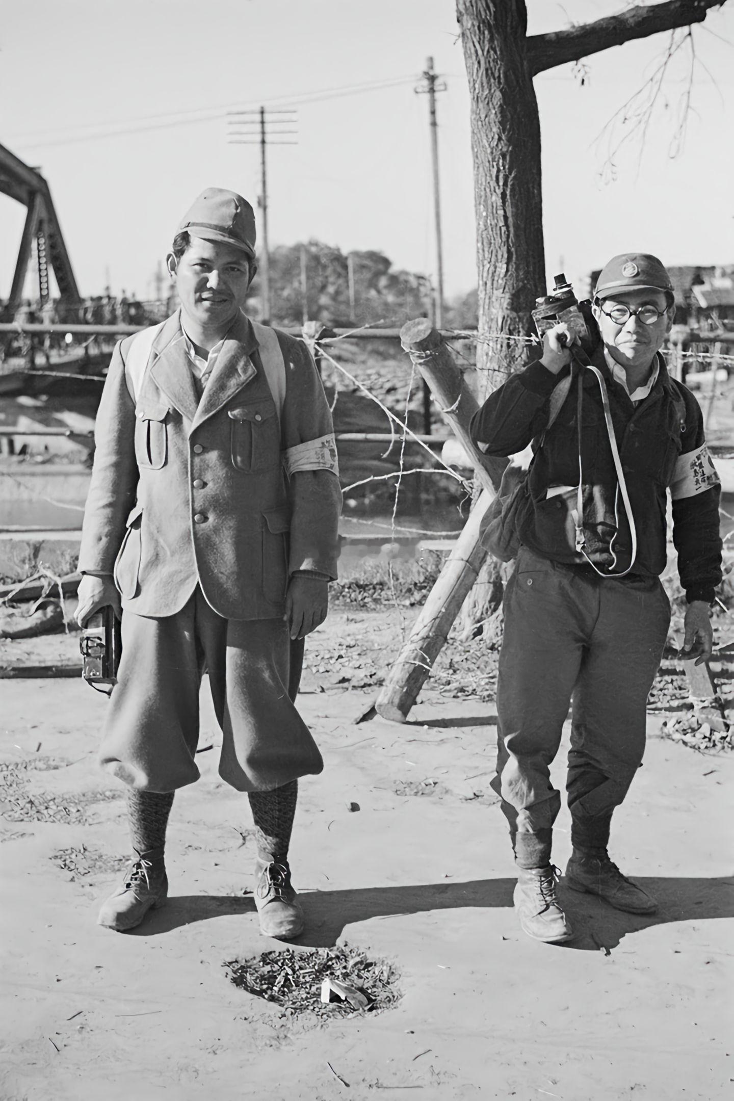 【老照片】上海杰斯菲尔德铁路桥旁的日本兵。