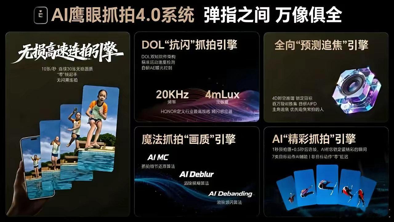 荣耀AI鹰眼抓拍已迭代到4.0版本,这项技术从2020年打磨至今。它要解决的,是抓拍中最实际的矛盾:快门快了画面暗,慢了又容易糊。