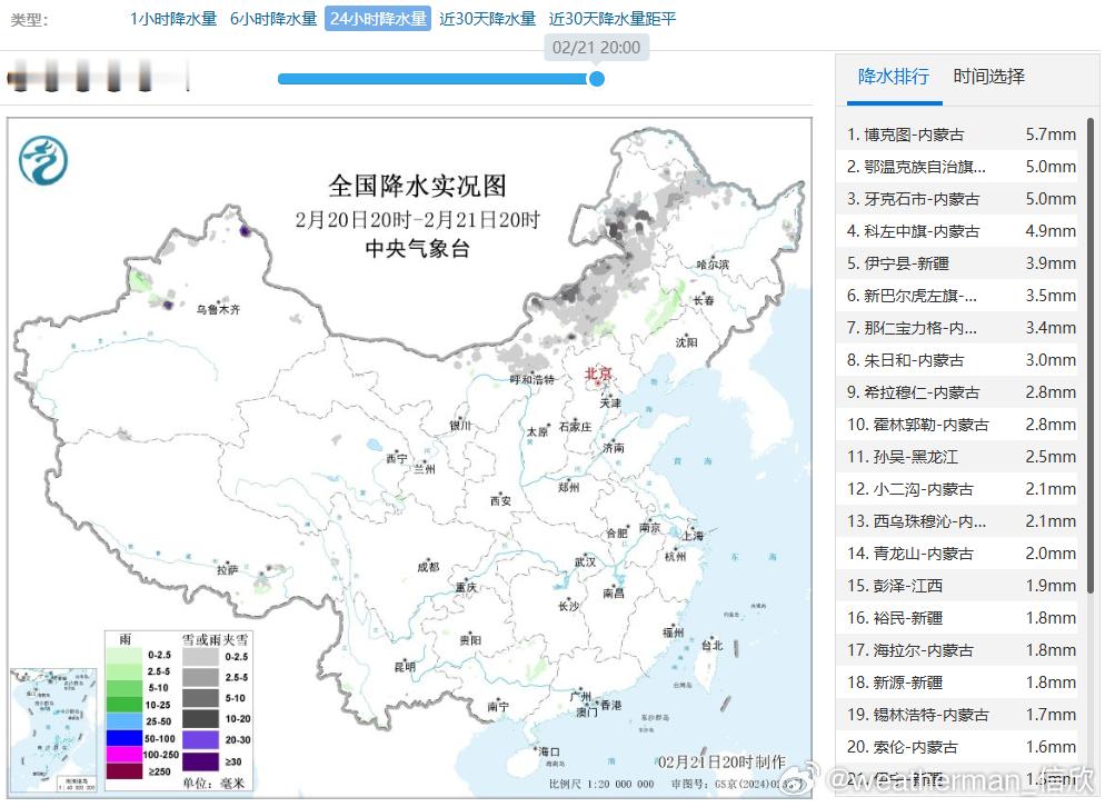 【雨雪】昨晚到今天,降雪主要出现在内蒙古,博克图、鄂温克旗、牙克石出现大雪。今晚