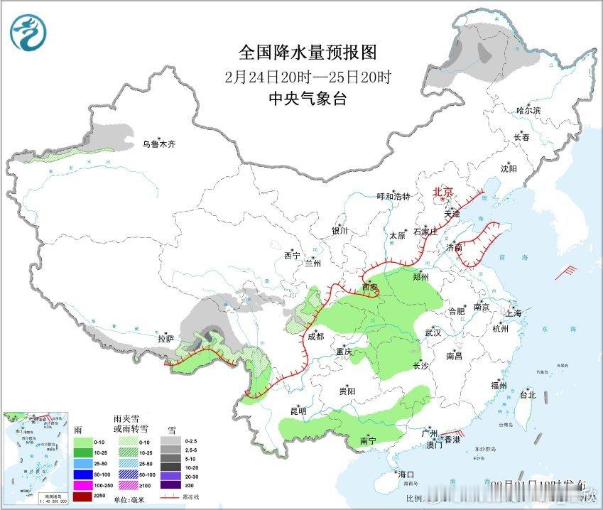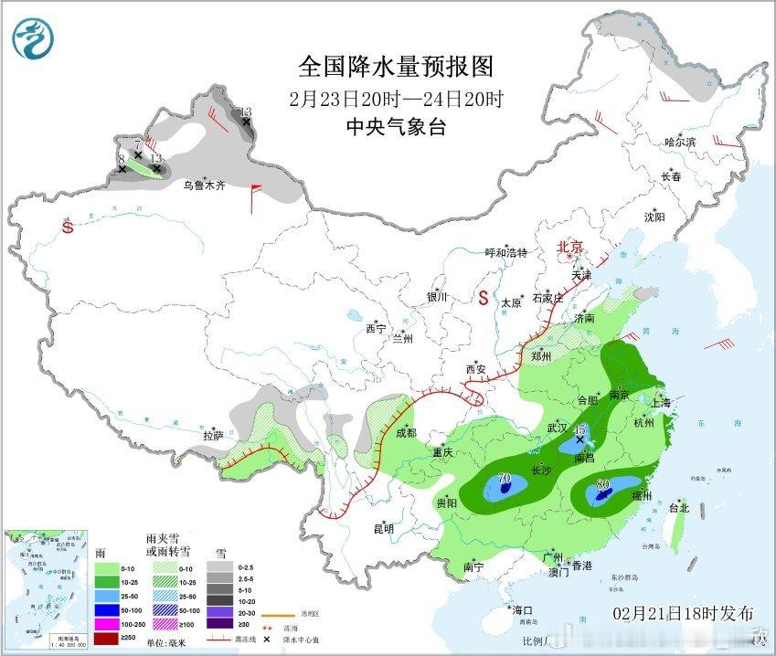 【雨雪】昨晚到今天,降雪主要出现在内蒙古,博克图、鄂温克旗、牙克石出现大雪。今晚到明天,降雪继续增强,内蒙古东北部、黑龙江中西部、吉林西部、新疆北疆西部等地部分地区有大到暴雪,其中,黑龙江西部局地大暴雪(20~25毫米)。上述部分地区新增积雪深度6~12厘米,局地可达18厘米以上。