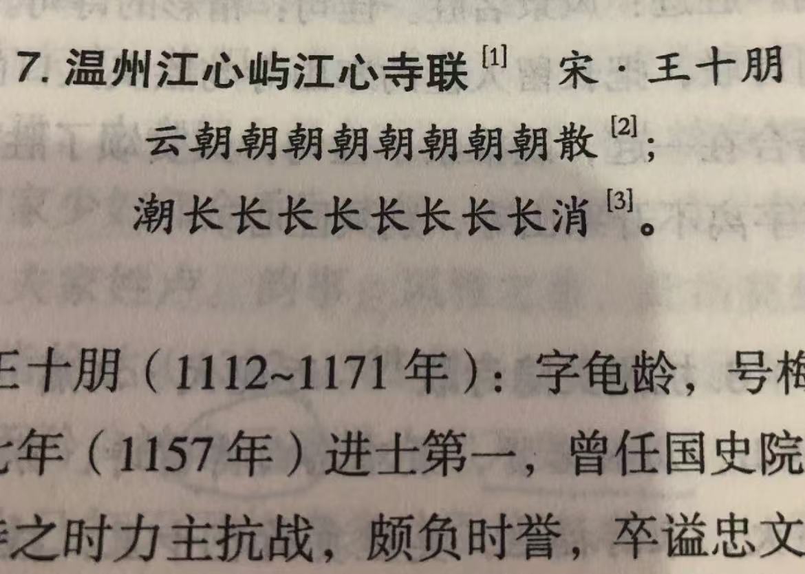 一副对联几十种读法 你敢来接受挑战吗被一副对联整不会了 谁懂啊!被温州江心寺对联难住了!“云朝朝朝朝朝朝朝朝散,潮长长长长长长长长消”,几十种读法,越读越上头!江心屿美称“瓯江蓬莱”,风光与文化并存!