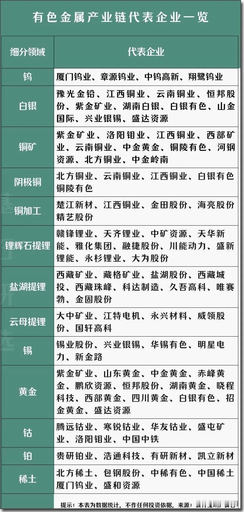 有色金属10家热门公司 有色金属产业链代表企业一览