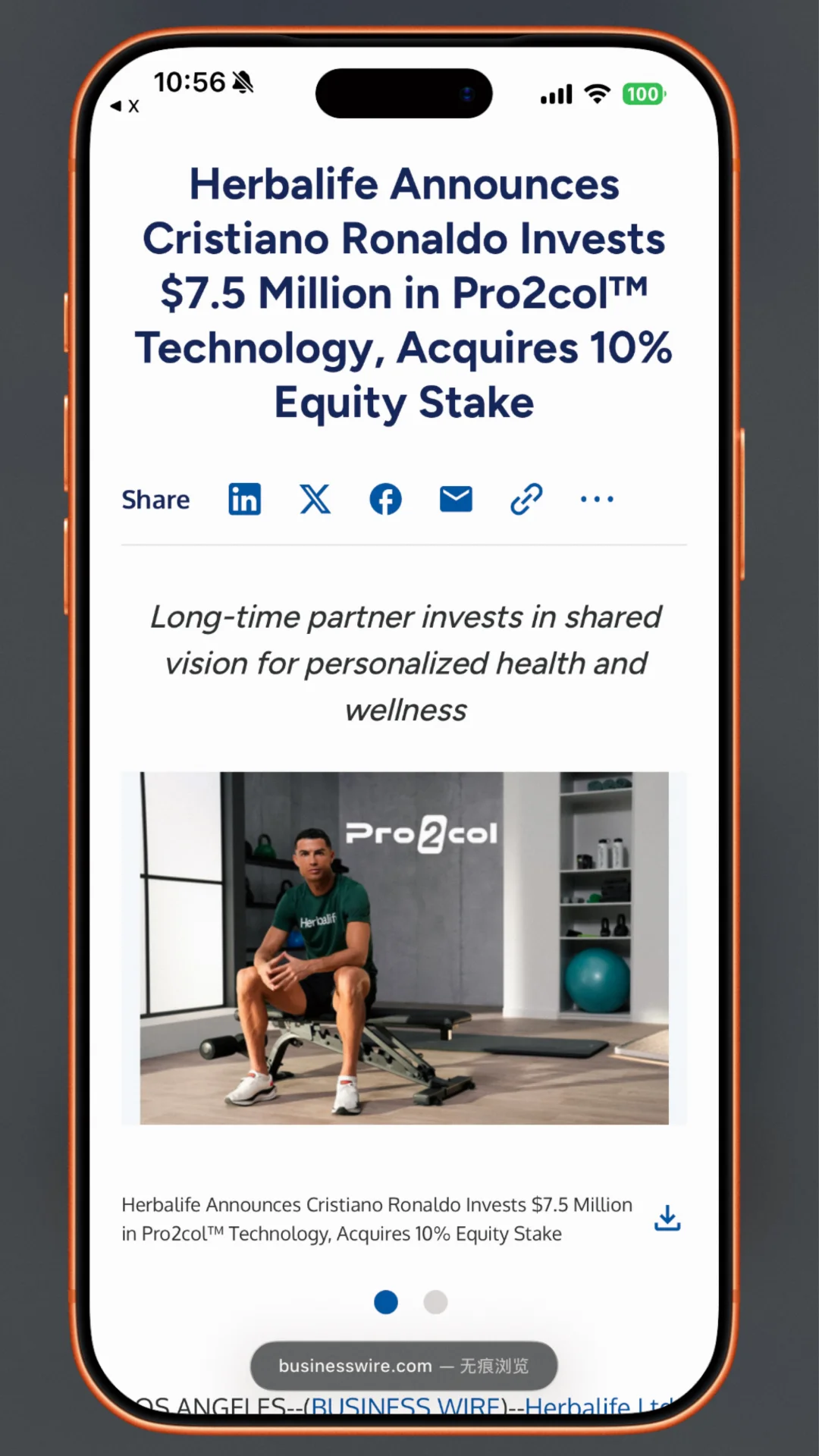 🌟“克里斯蒂亚诺十多年来一直是我们的重要合作伙伴,他决定入股Pro2col标志着我们合作关系的一个重要里程碑,”康宝莱首席执行官斯蒂芬·格拉齐亚尼表示。“他的投资体现了他对营养、数据、人工智能和个性化洞察在改善健康结果方面的力量的共同信念,也增强了他对Pro2col未来影响力的信心。”