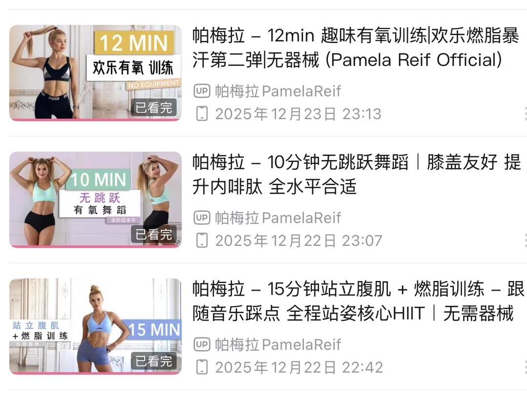 也可自重训练可以跳两个帕姐的跟练,我喜欢的都在图三 ! 两个跟练约等于300大卡 三个跟练约450大卡 !晚上做挺够!能去健身房就去,跑跑步,轻松跑即可,zoom2 才是最燃脂的区域!