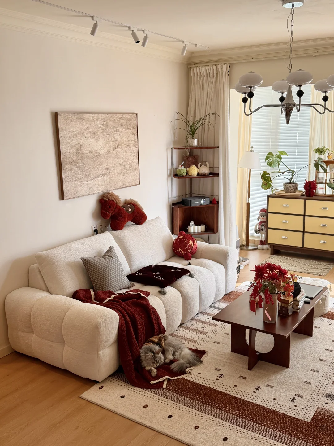 别人挑剩的西户精装房改造成现在温馨小家 按照自己喜欢的风格改造,封窗➕通铺木地板 通刷浅色系的漆,家具木质家具,浅色系搭配木桃木 整体很温馨,不会单调廉价~ 要过年了,家里也布置了些让家里年味满满的小装饰 和小猫住在这里,感觉人生都变好了
